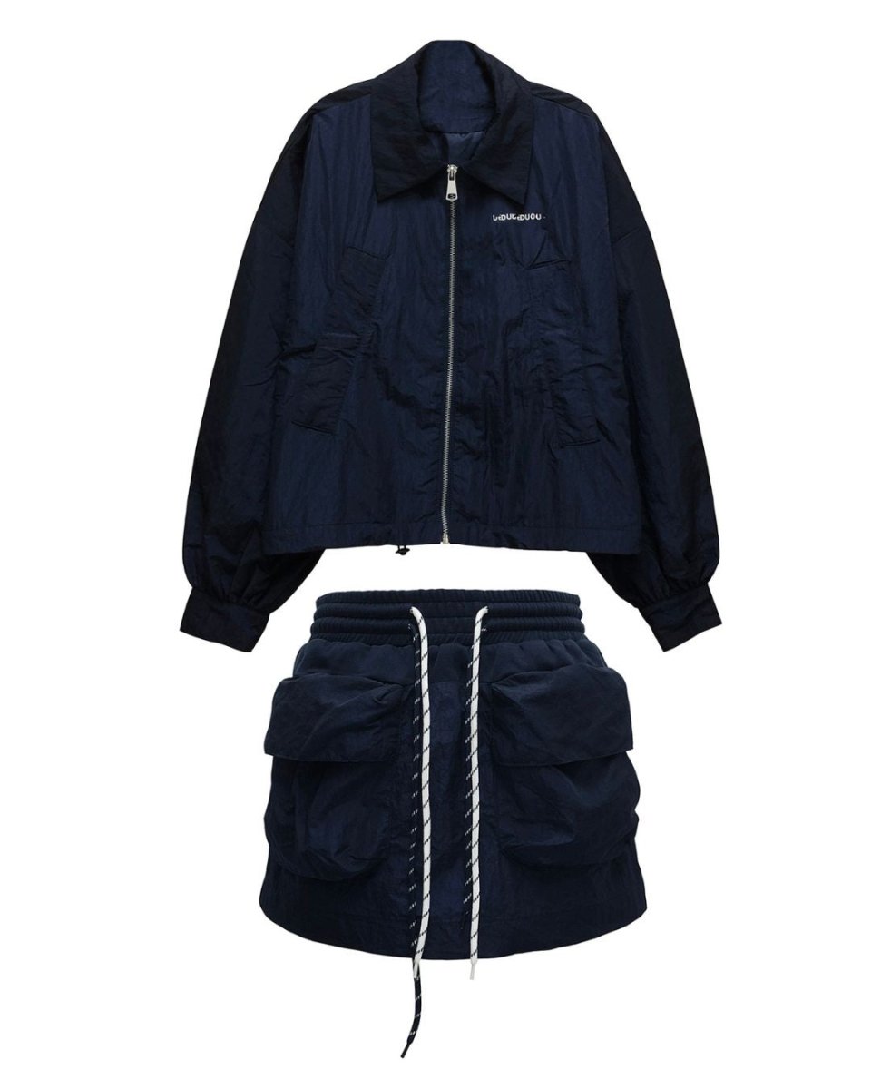 MiOO Self-Made LLDC Flight Suit Jacket + Low-Waist Cargo Skirt Women's Autumn American Casual Two-Piece Set