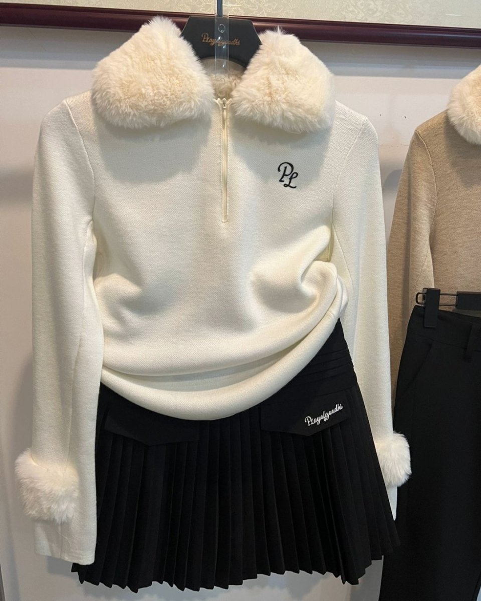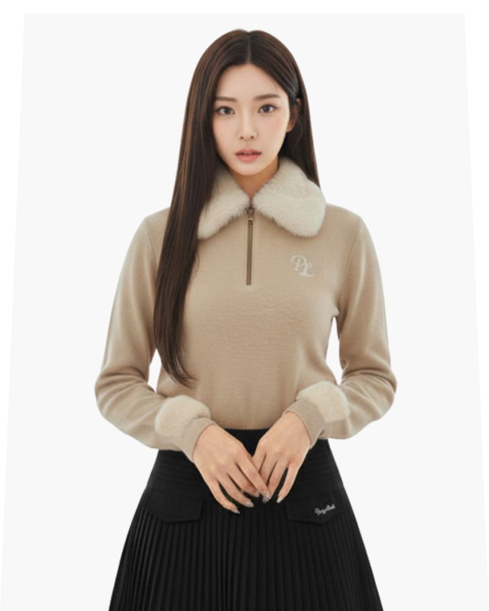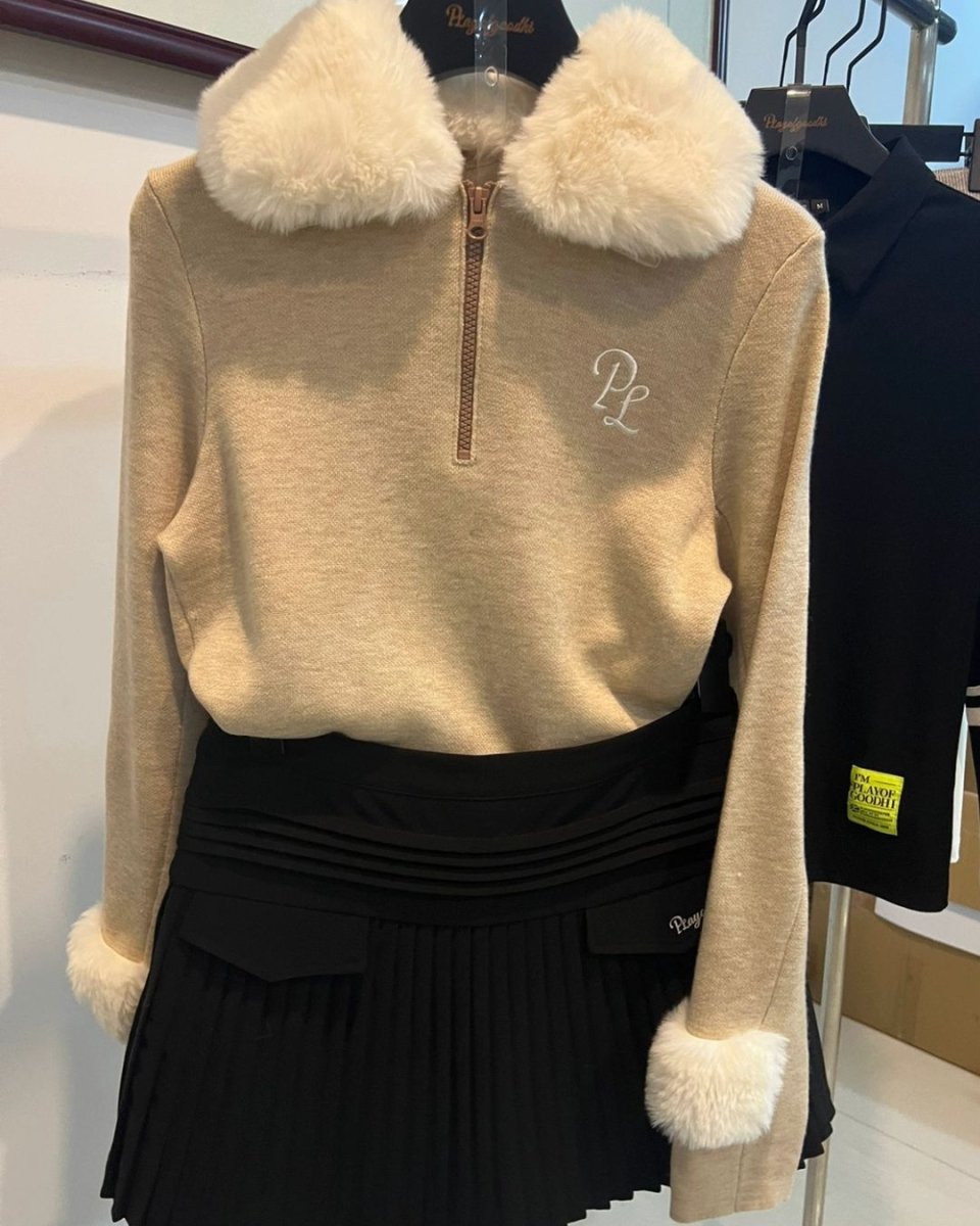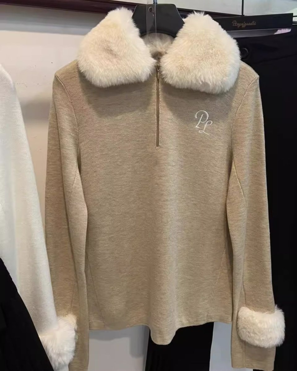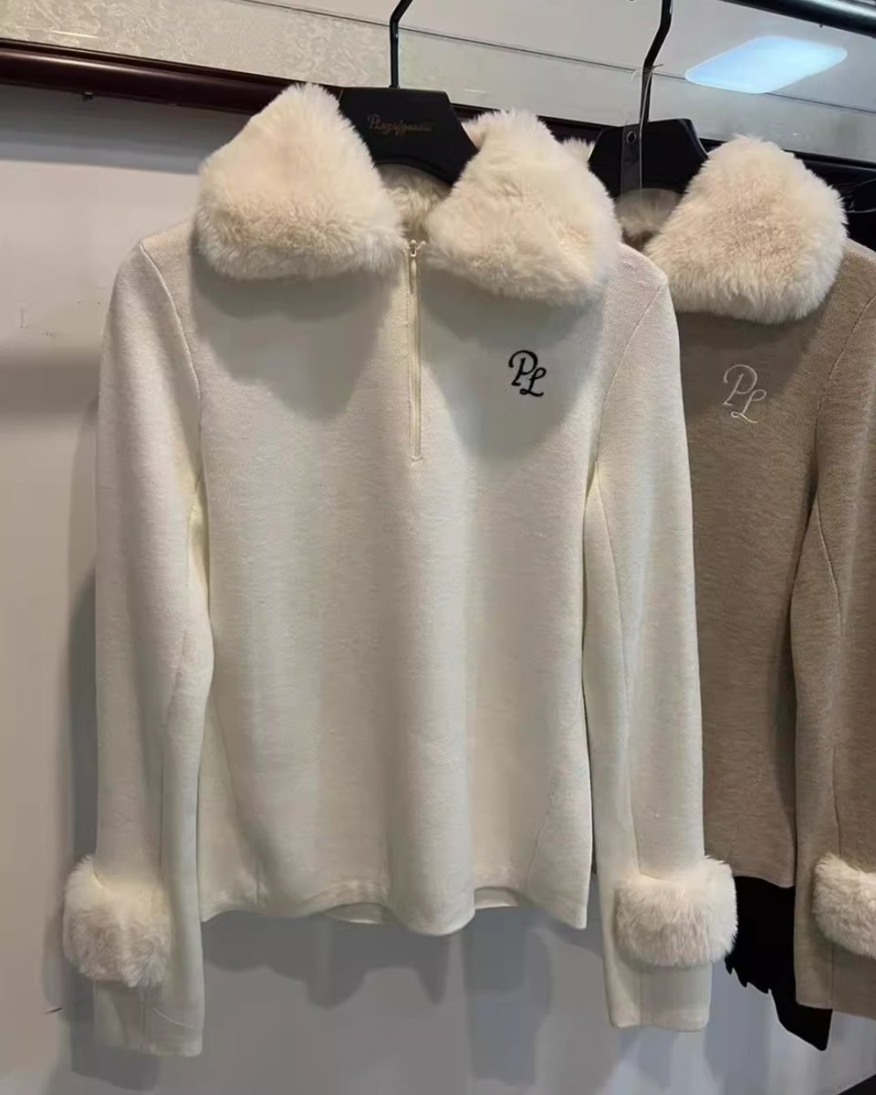 ハーフジップ フェイクファー襟付きトップス CH792 - Chamule