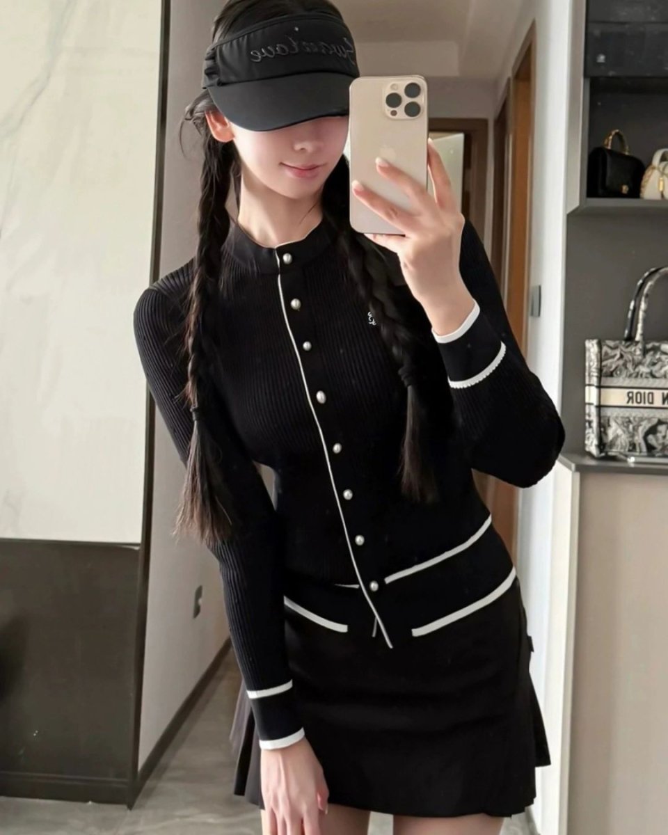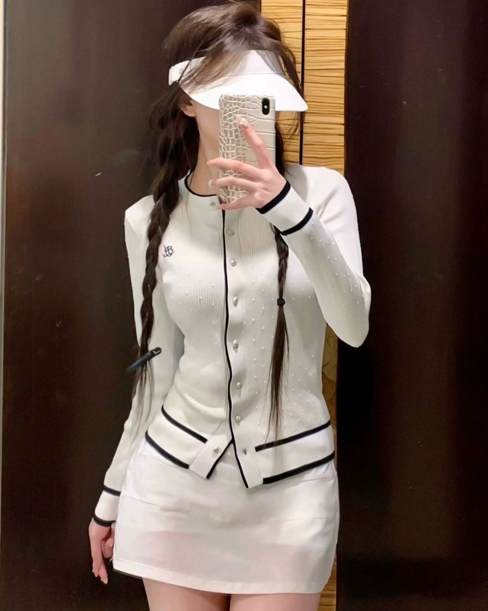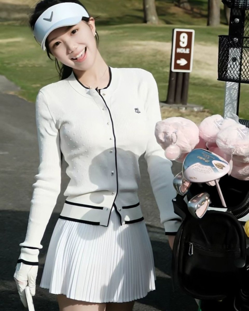 Song Ji-ah's Korean version of the cardigan golf long-sleeved sweater is warm, comfortable, fashionable, and high-quality knitwear.
