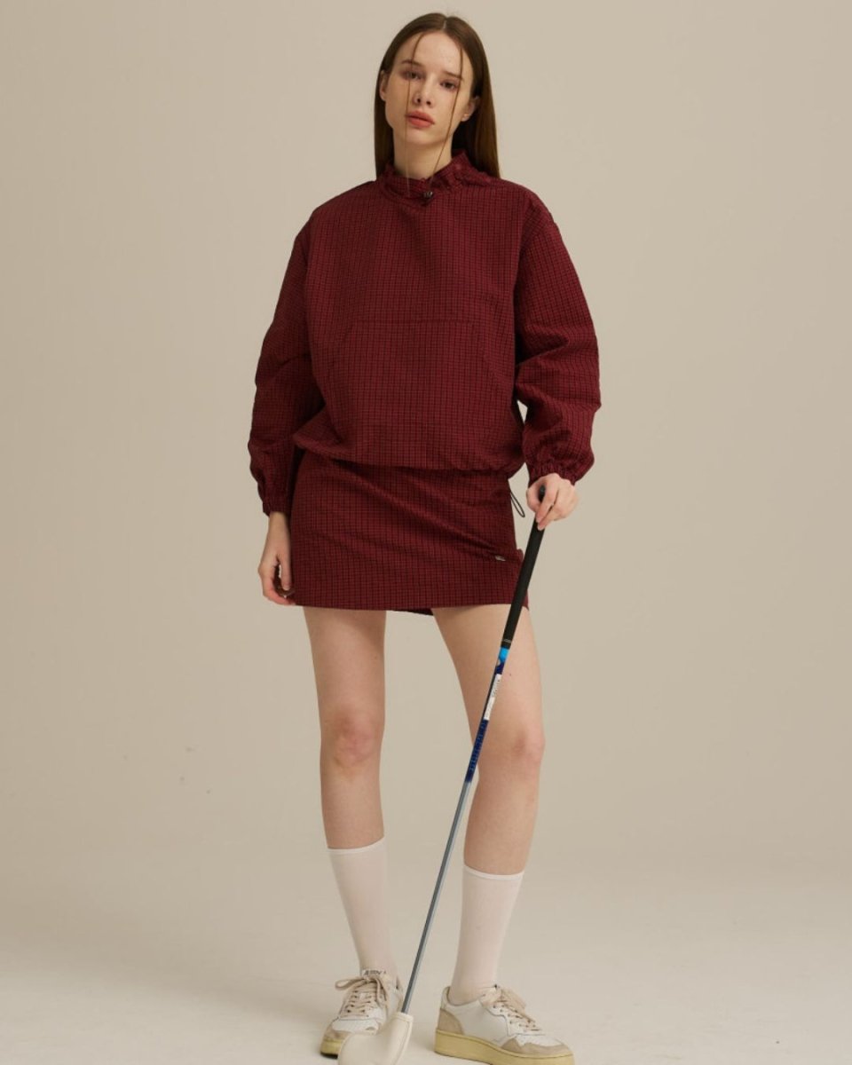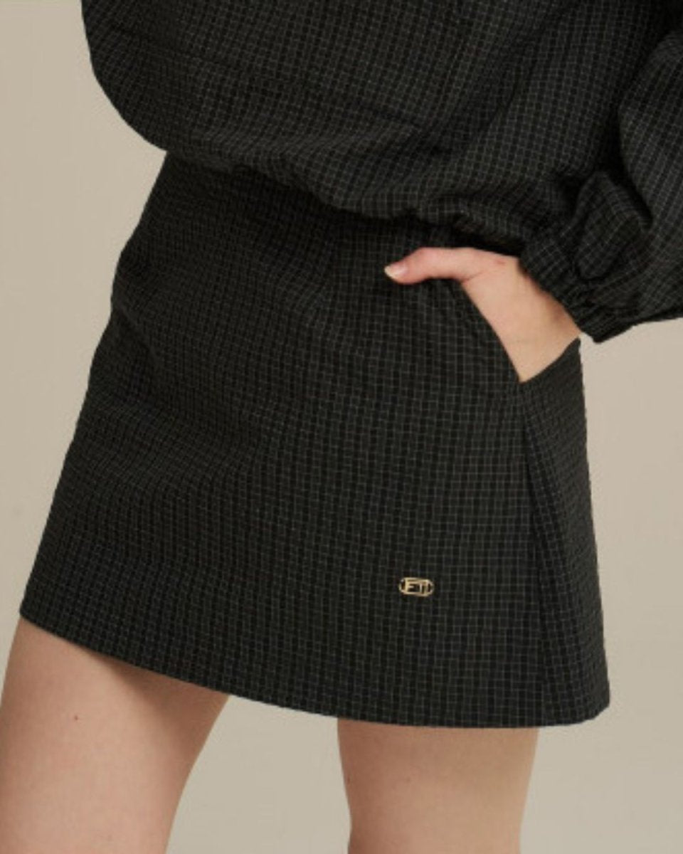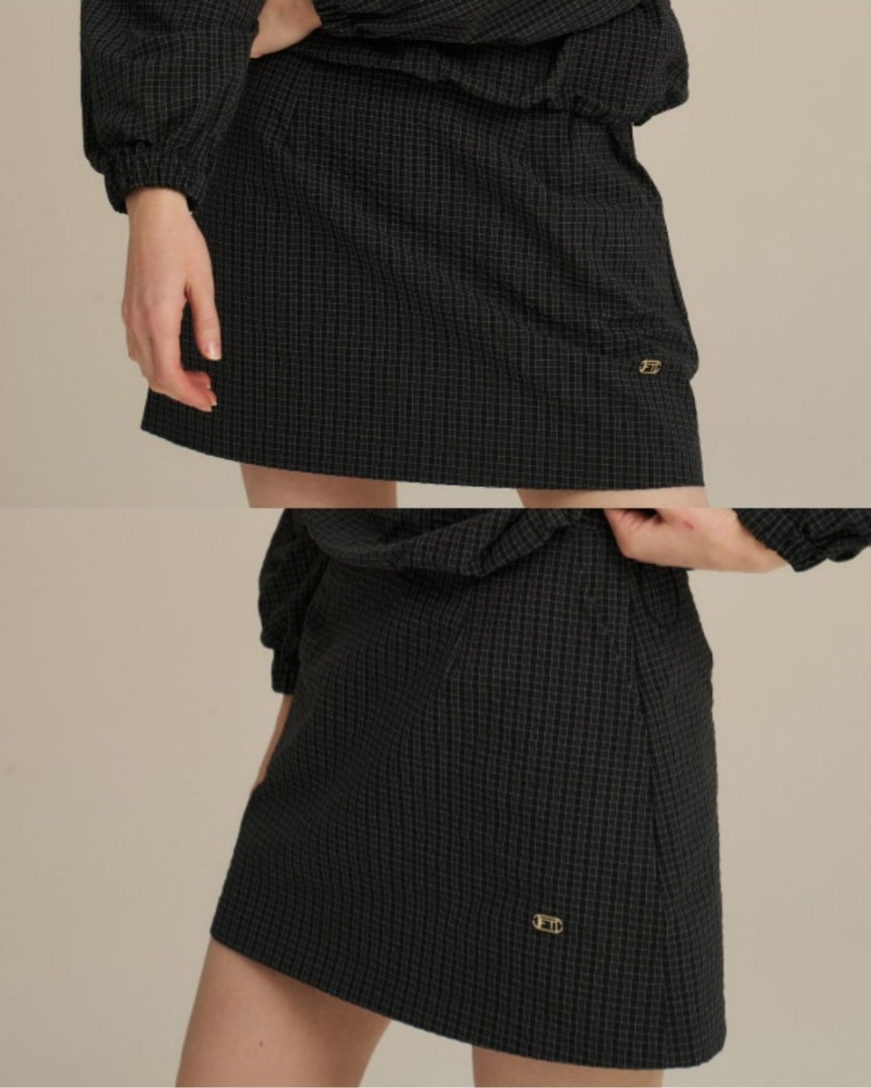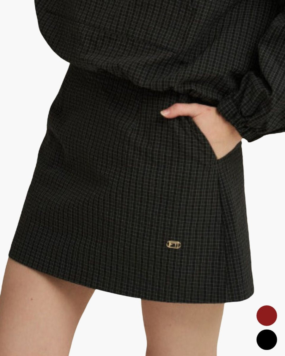 These golf mini skirt pants feature a delicate check pattern for a sophisticated look. The lightweight material allows for easy movement and stress-free swinging. They also have pockets on both sides for practicality. Pair them with a top of the same design.SetIt's a cute and grown-up golf outfit perfect for rounds and practice in the fall and winter.
