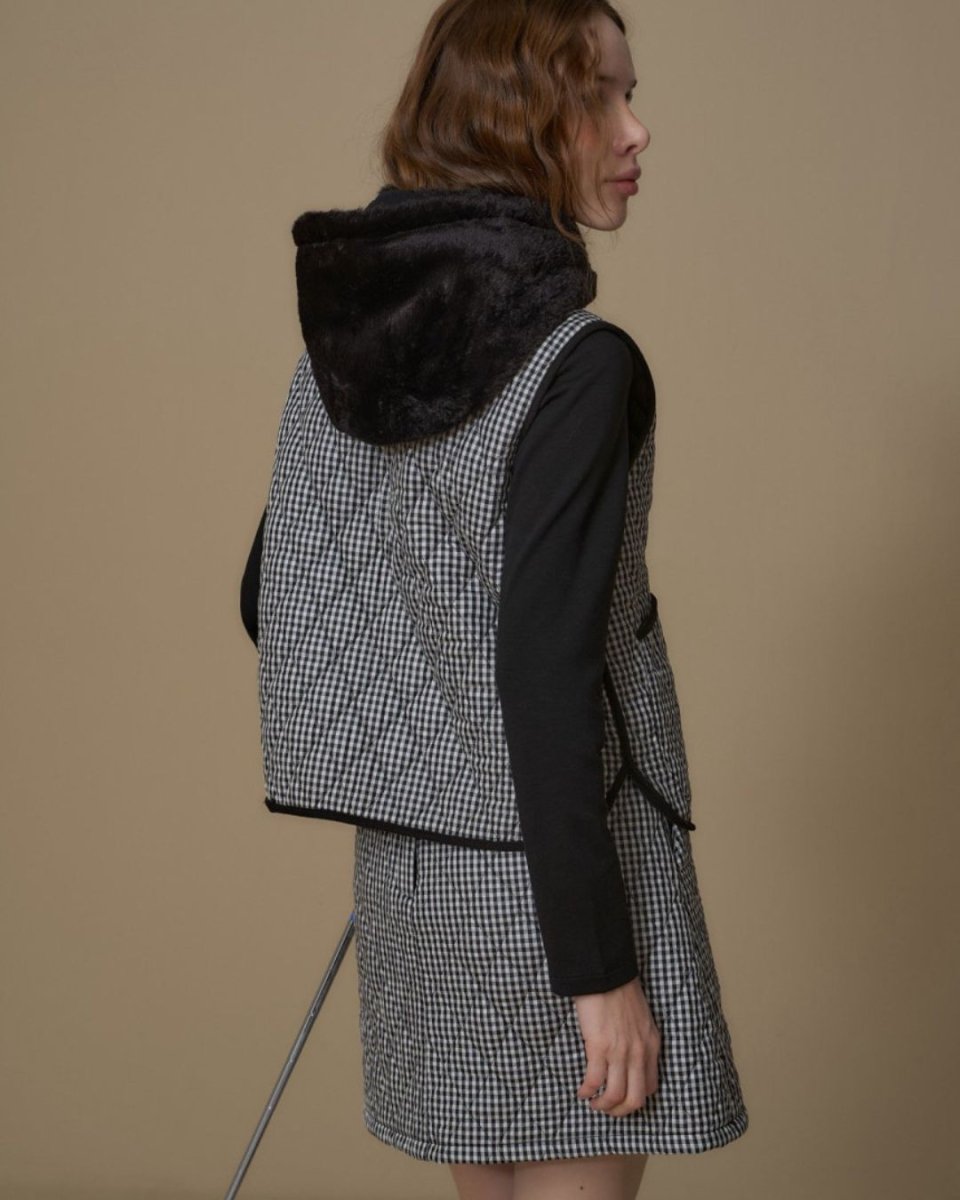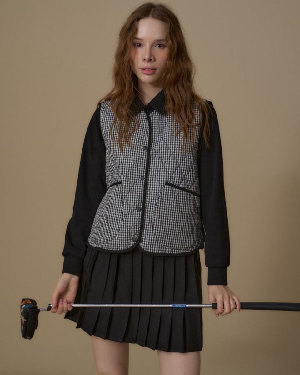 Gingham check quilted vestSet[Top and bottom sold separately] CH855