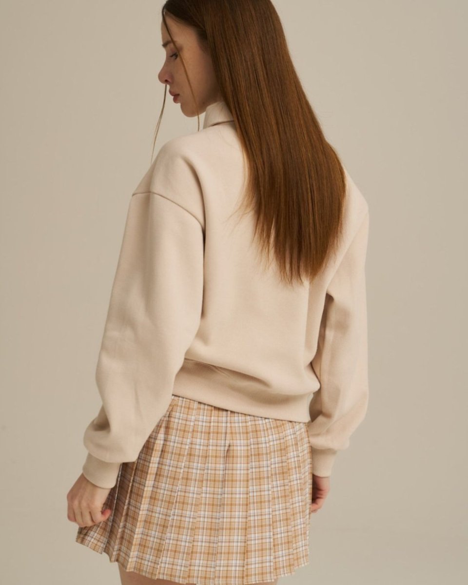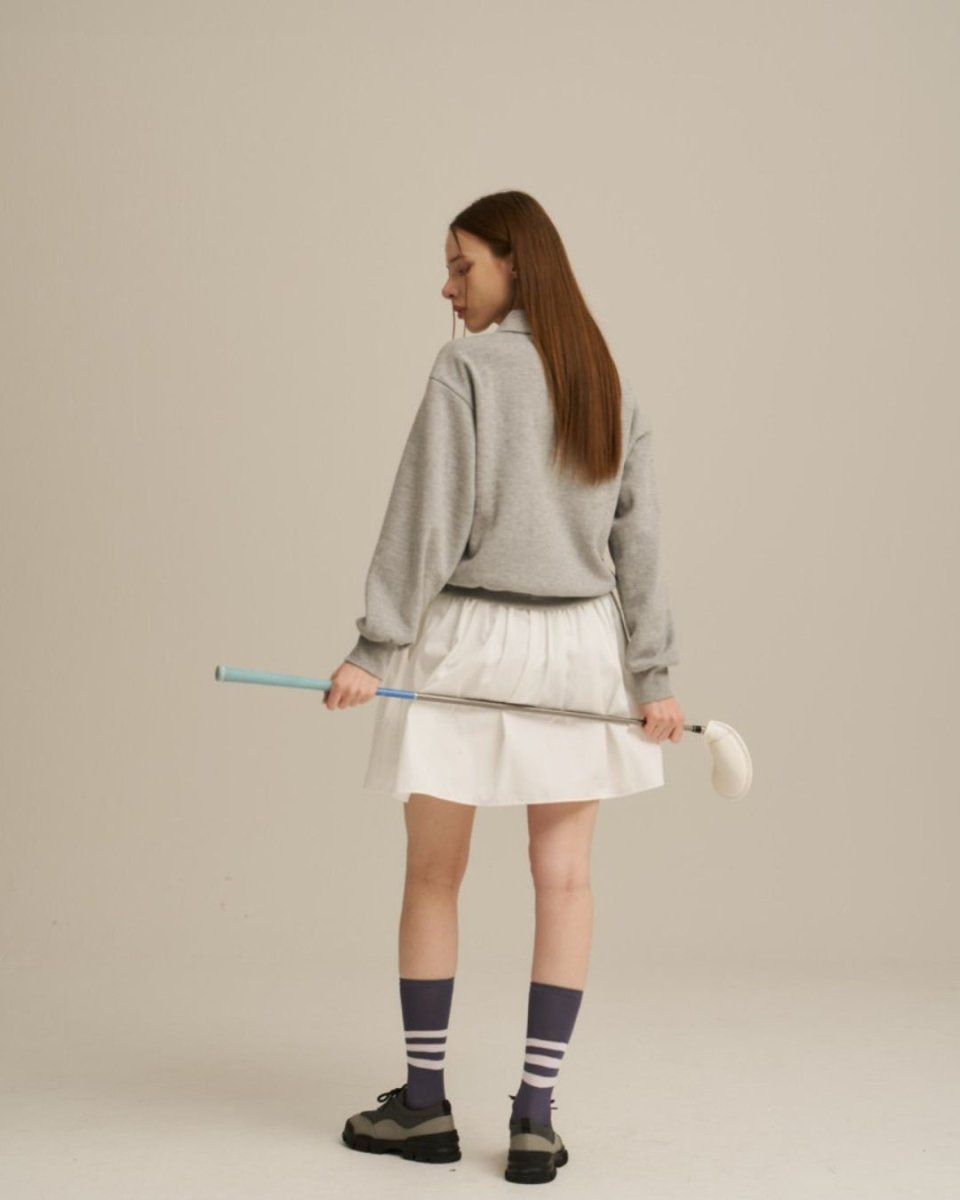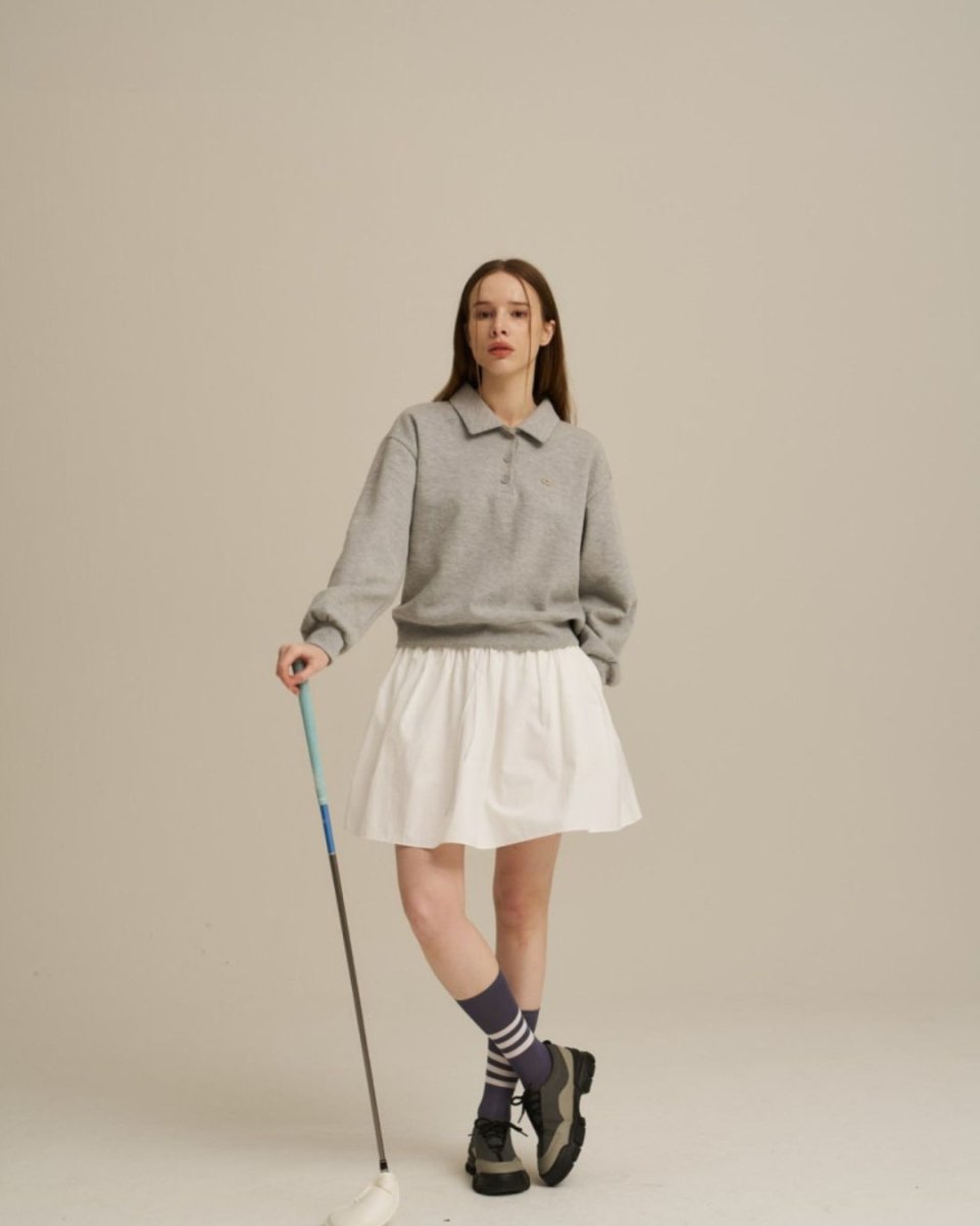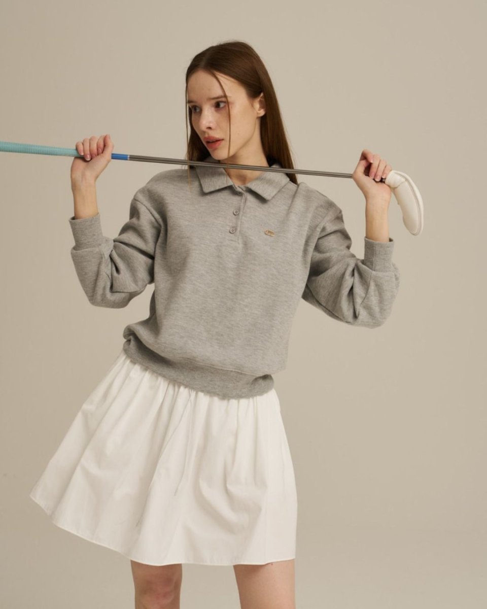 This sweatshirt features an elegant collar and is perfect for a golf outfit. Its moderate thickness makes it easy to wear in any season, and its relaxed fit won't hinder your swing. A versatile top that's simple yet stylish, it's perfect for practice, rounds, and everyday wear. It's also recommended for beginners.