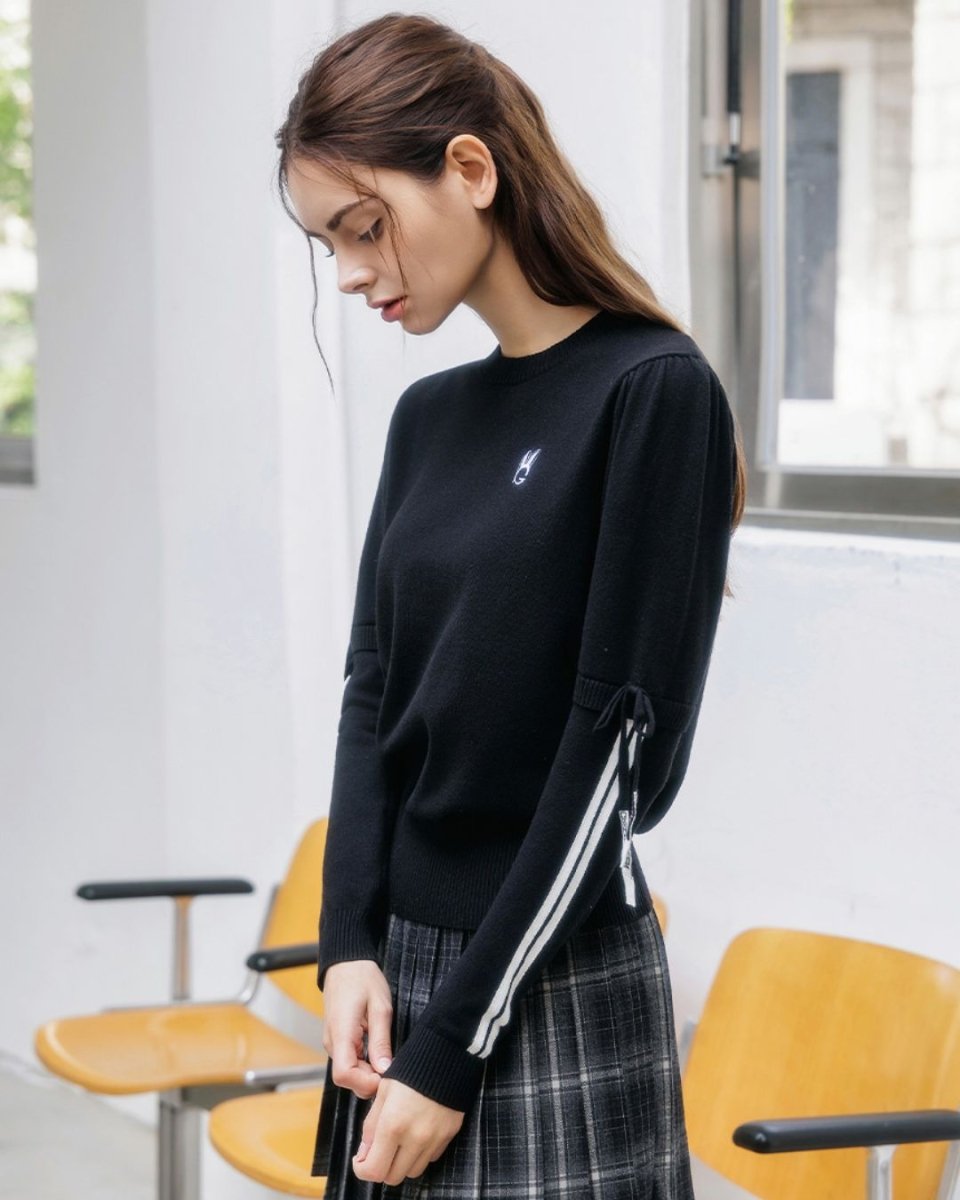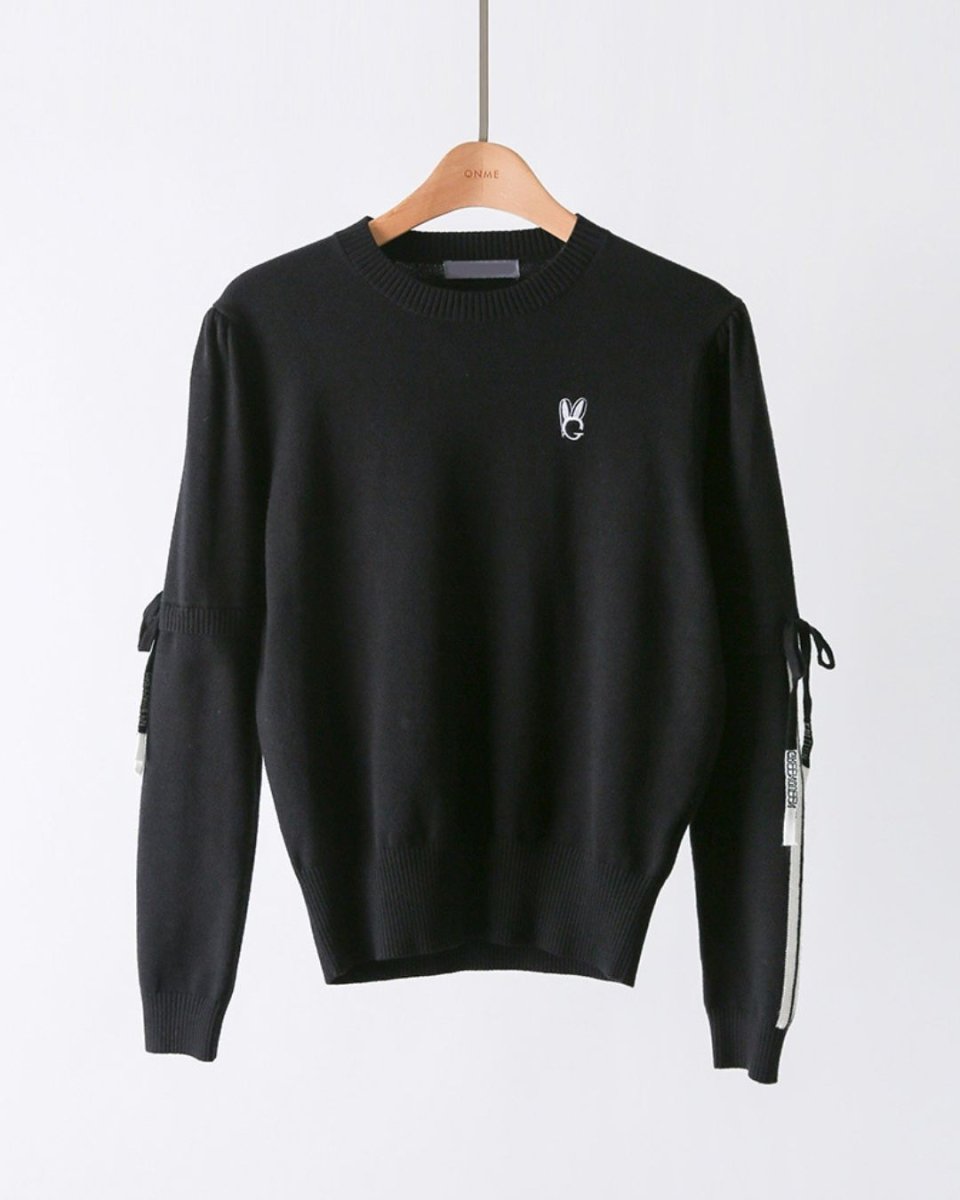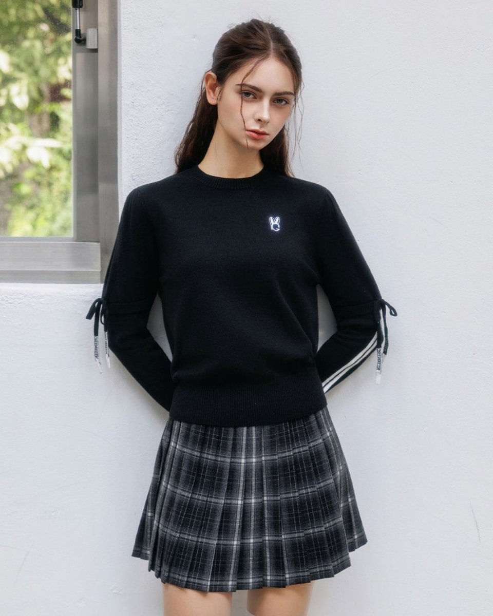 This women's golf knitwear features ribbon designs on the sleeves for a sophisticated look. Its comfortable fit allows for easy movement and reduces stress during your swing. The simple crew neck adds an accent, making it perfect for the golf course, practice, or everyday wear. It pairs well with skirts and pants, adding a touch of glamour to your fall and winter golf outfits.