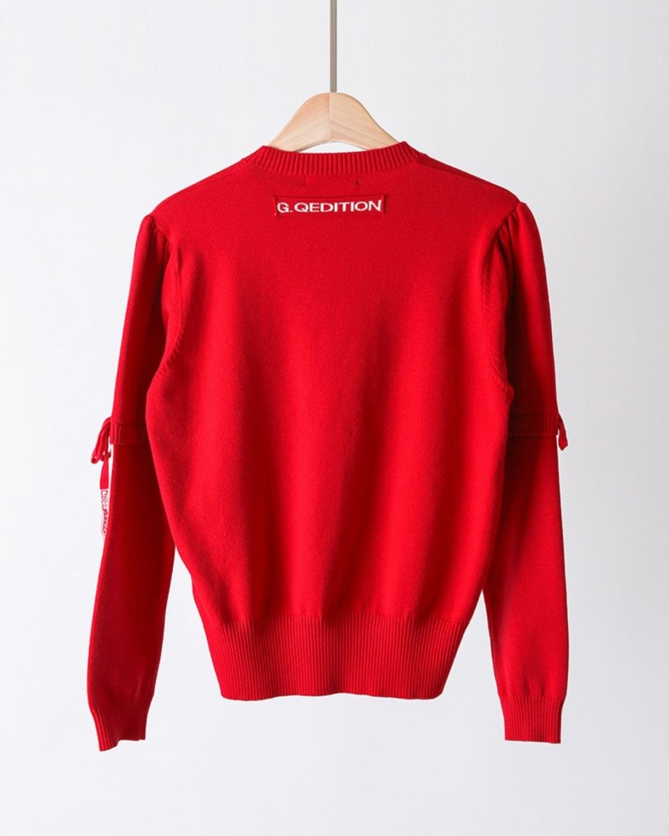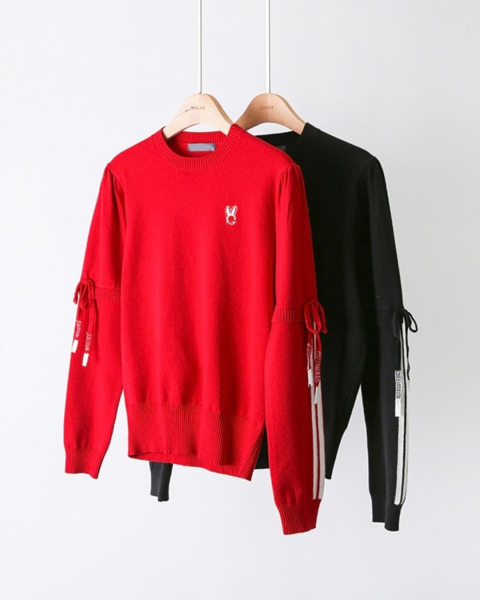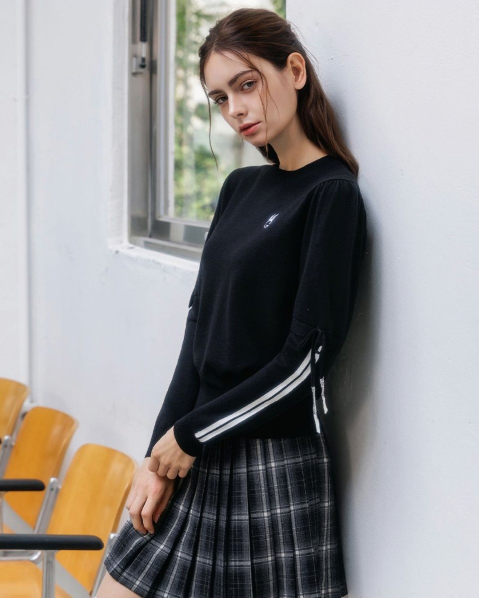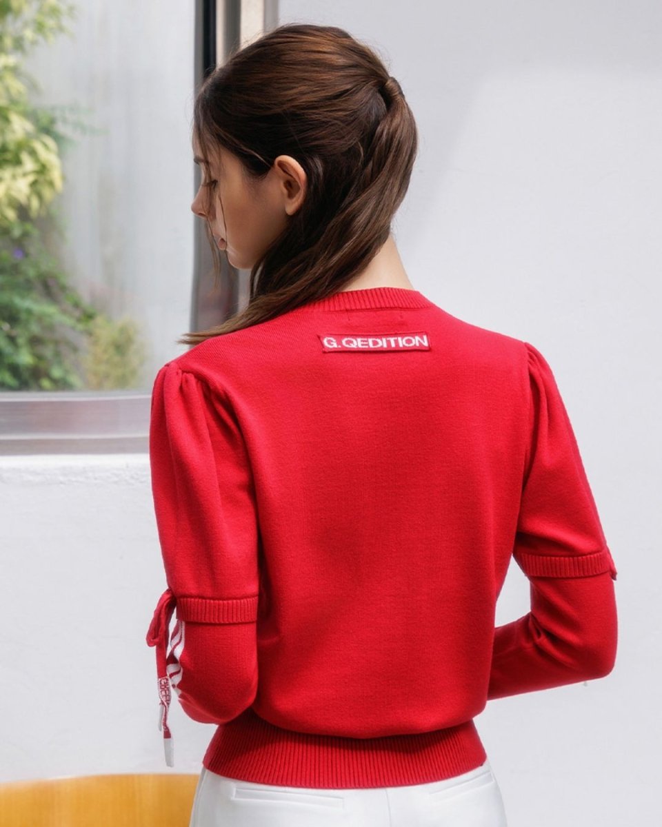 This women's golf knitwear features ribbon designs on the sleeves for a sophisticated look. Its comfortable fit allows for easy movement and reduces stress during your swing. The simple crew neck adds an accent, making it perfect for the golf course, practice, or everyday wear. It pairs well with skirts and pants, adding a touch of glamour to your fall and winter golf outfits.
