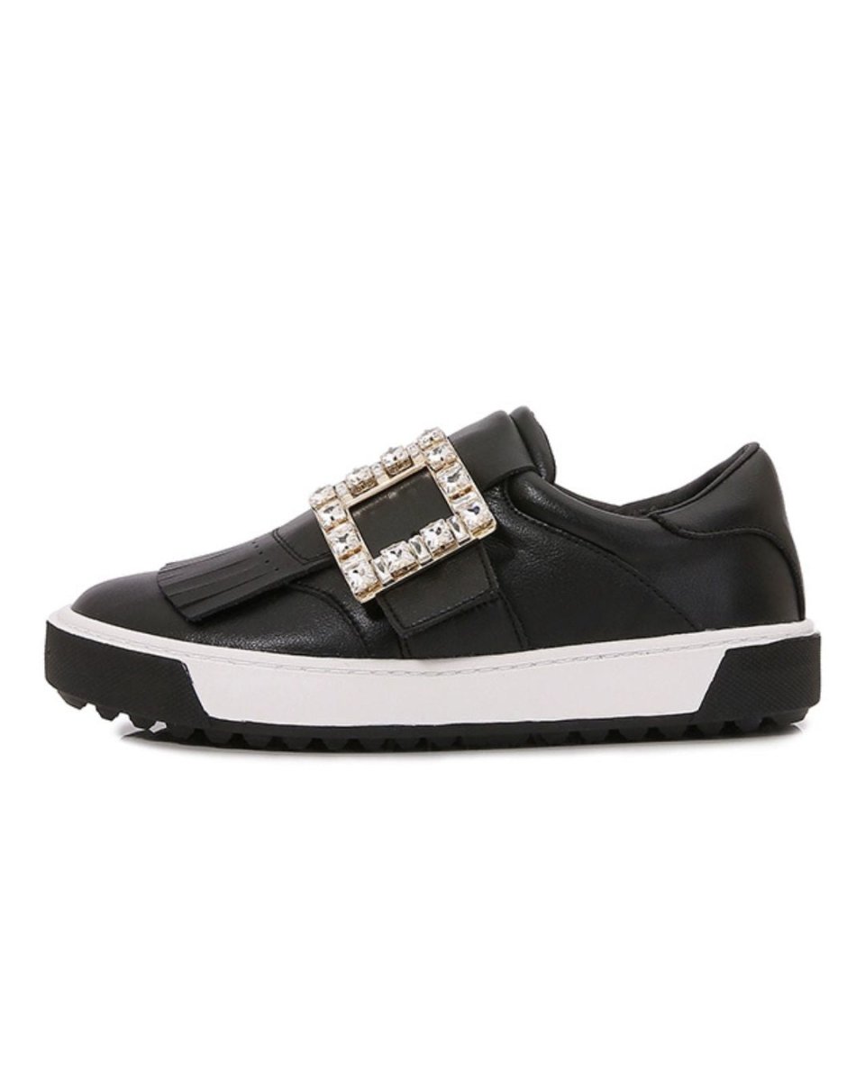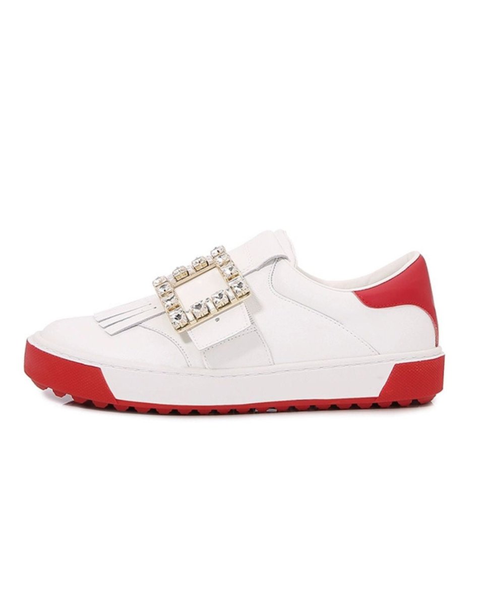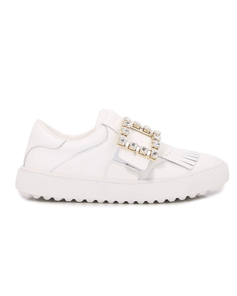 RV Tassel Diamond Buckle White Shoes Women's Leather Platform Sole Casual Board Shoes Color Blocking One-Foot Slippers Single Shoes Golf Shoes