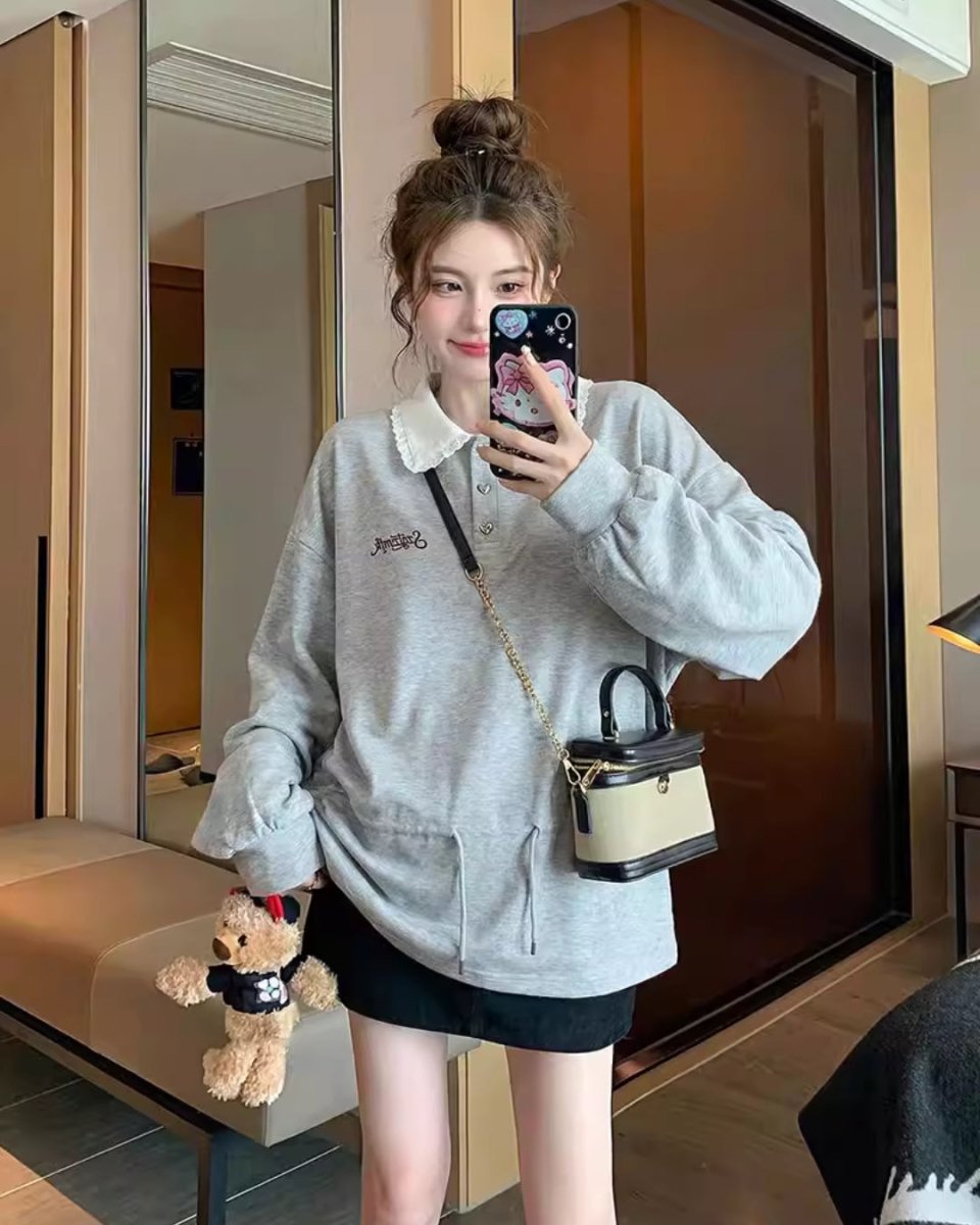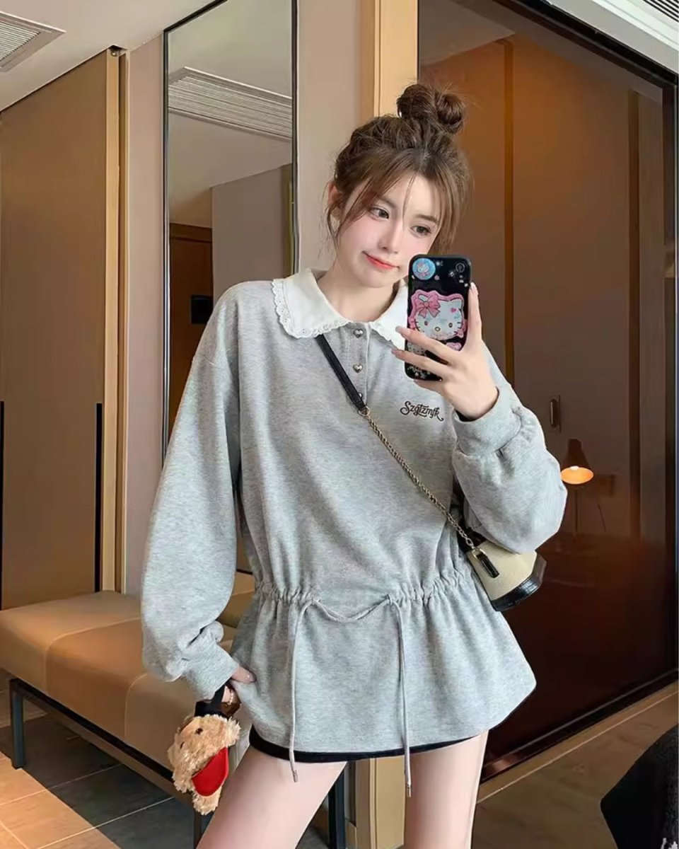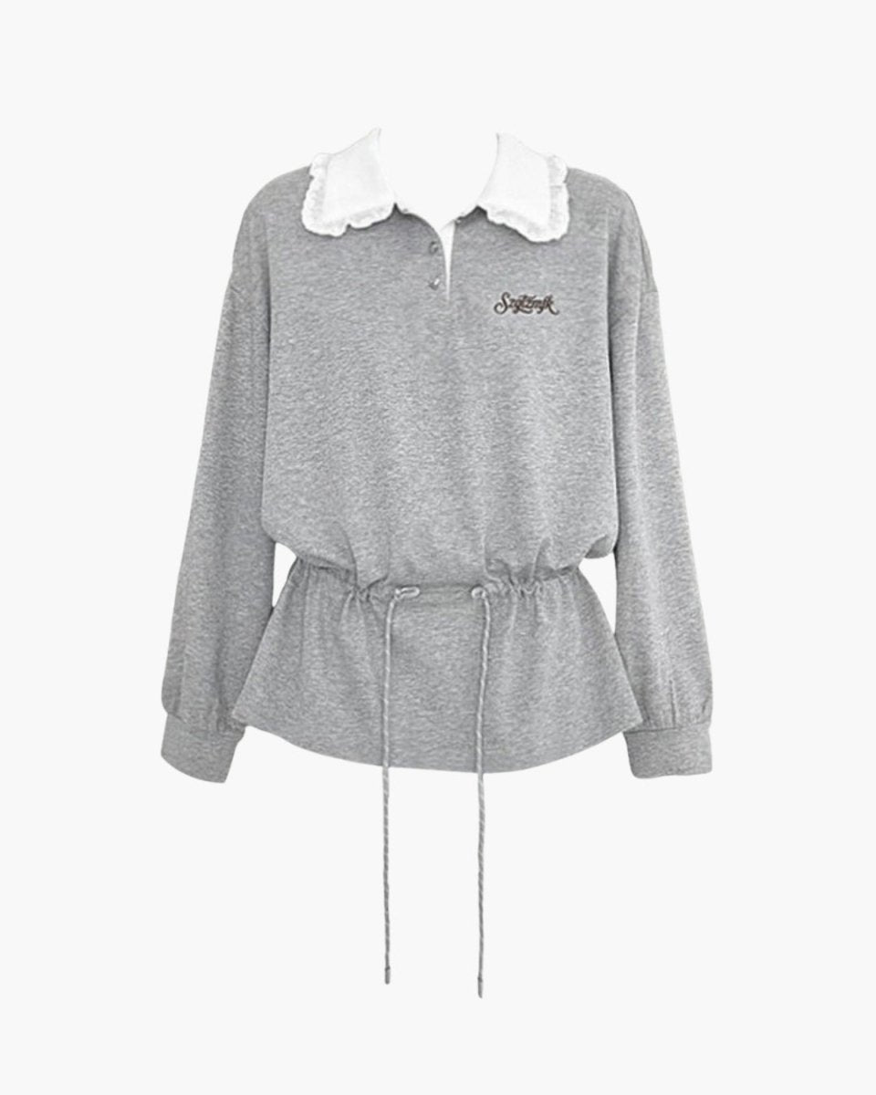 レース襟ドローストリングスウェットトップス CH1041 - Chamule