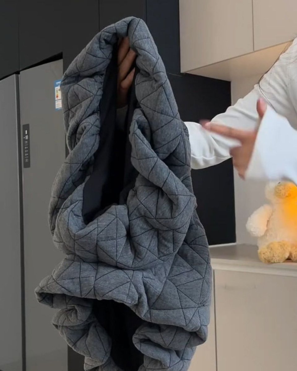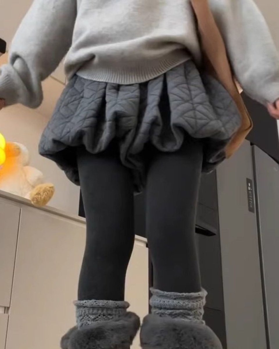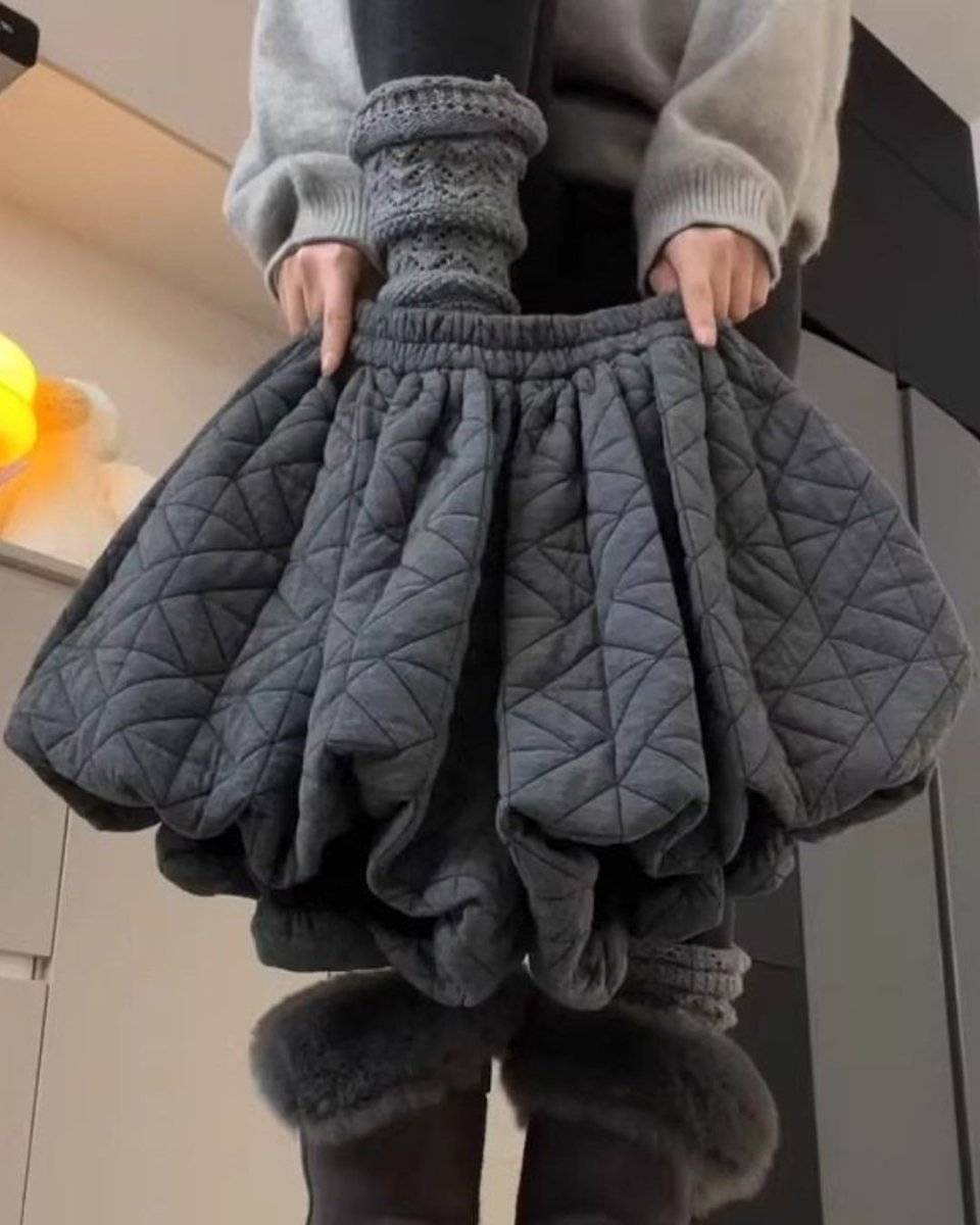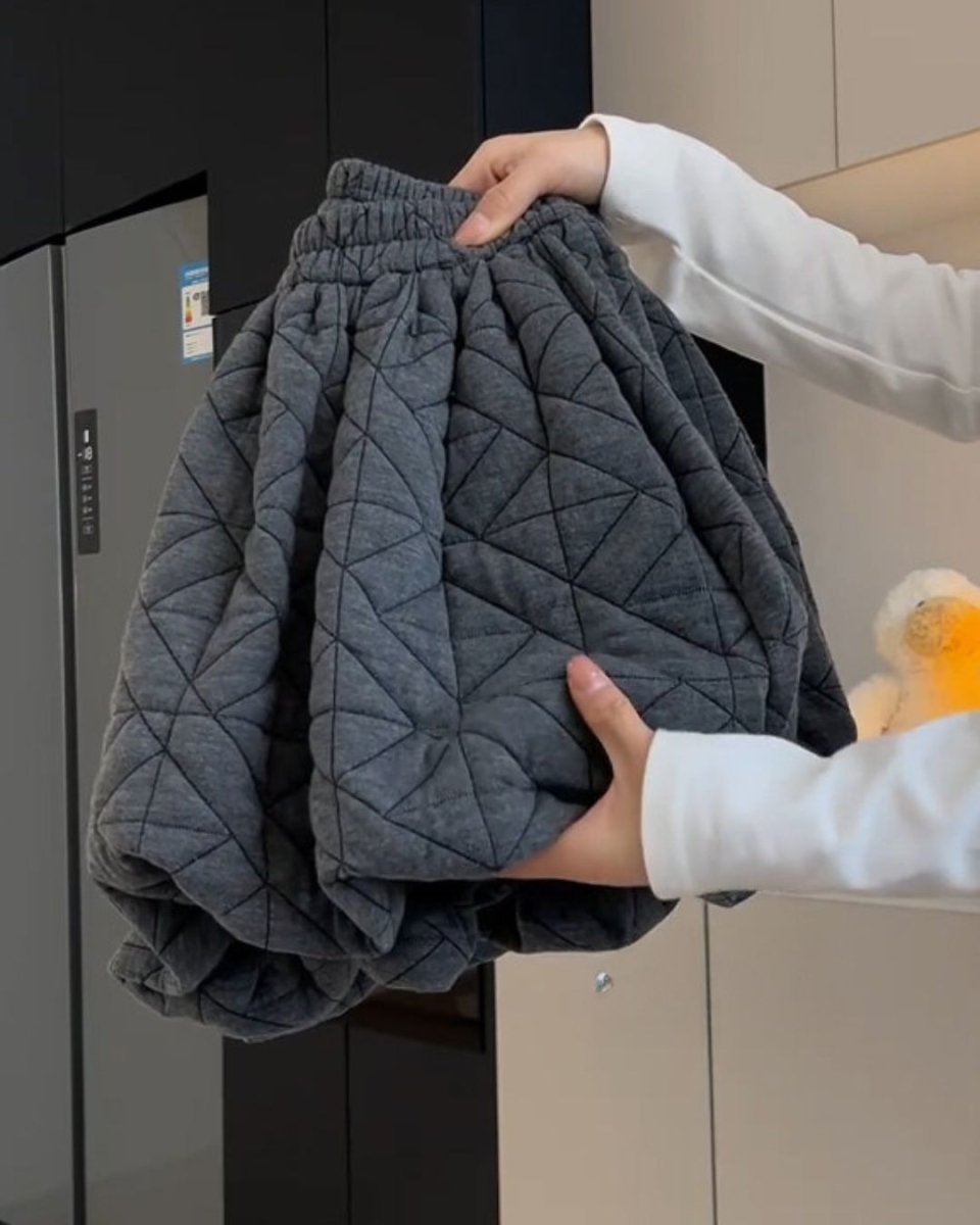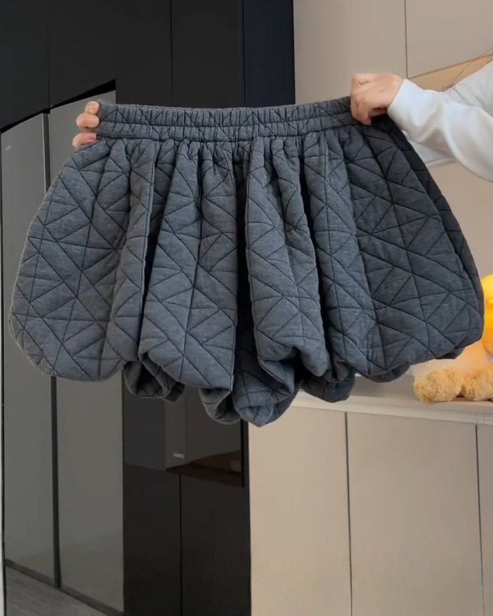 Dark Gray Diamond Check Clip Cotton Swab Shorts, Women's Warm and Comfortable Elastic Waist Wide Leg Pants, Fall/Winter 2025