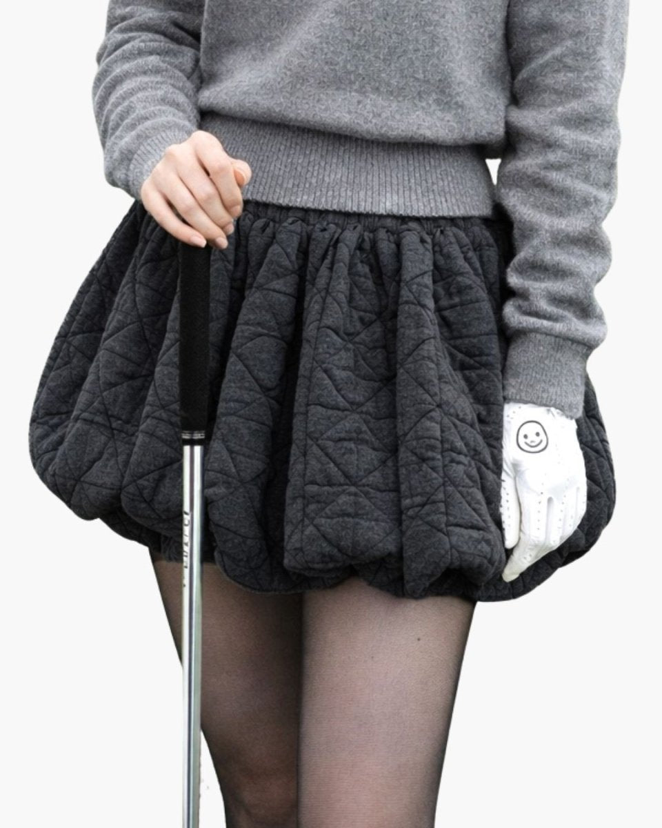 バルーンスカート風の丸みあるシルエットが可愛いゴルフキュロット。中はパンツ仕様で動きやすく、スイング時も安心。ウエストゴムで快適な履き心地。ゴルフはもちろん、練習や移動時にも活躍します。