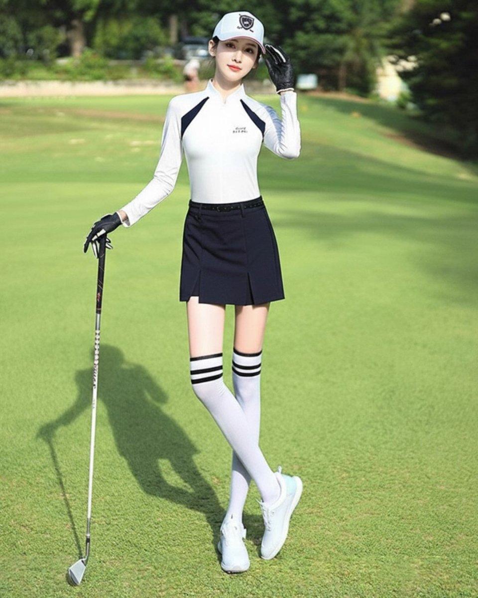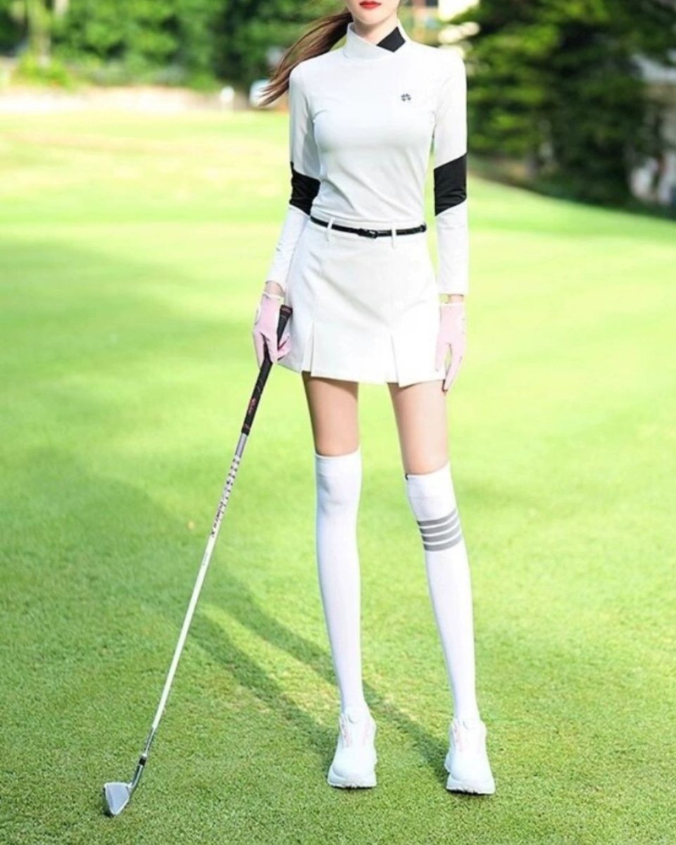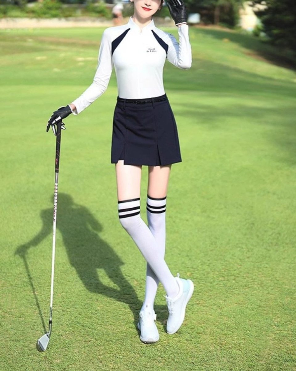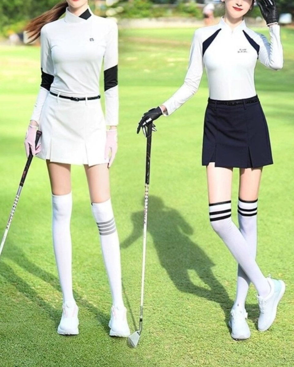 Women's Golf T-Shirt, Crew Neck, Long Sleeve, Korean Style, Sport Stitching, Slimming Jersey Set, Spring/Autumn