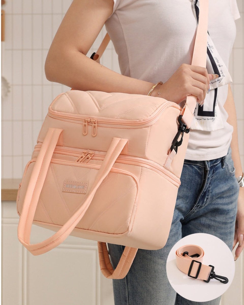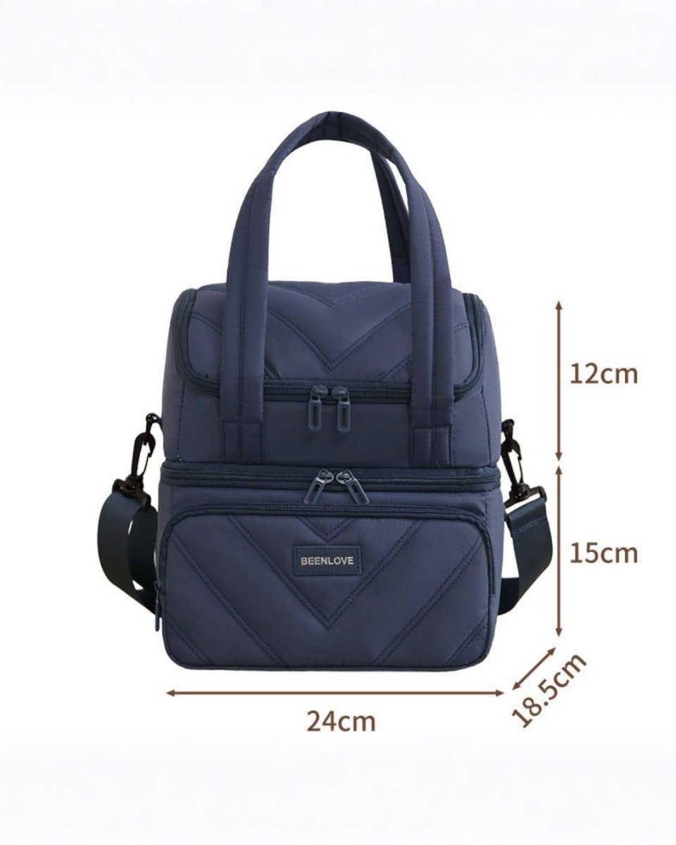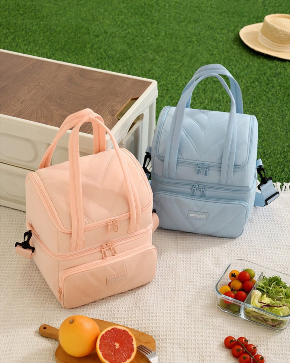 Double-layer lunch bag, large-capacity lunch box for cross-border use, insulated hand and shoulder bag for camping