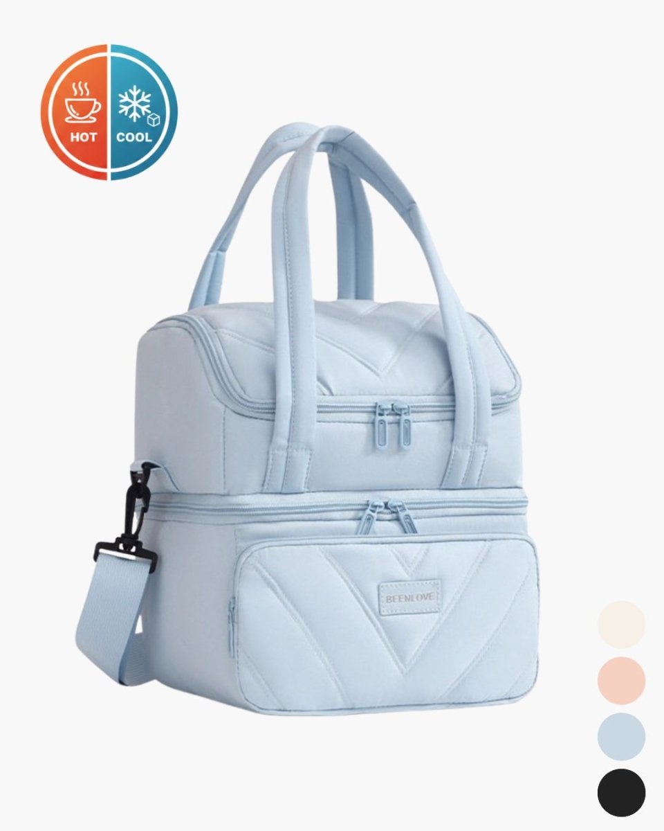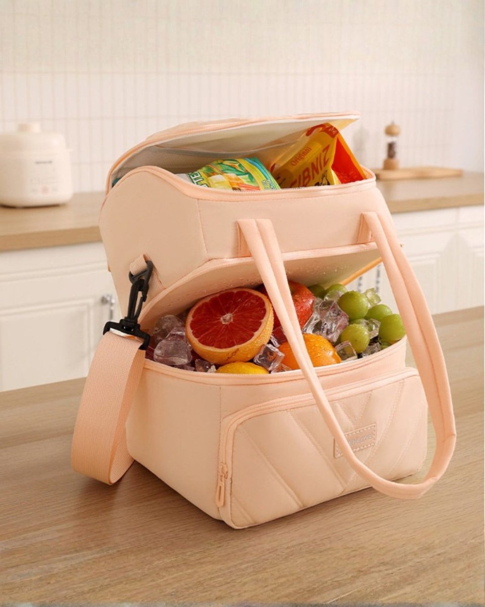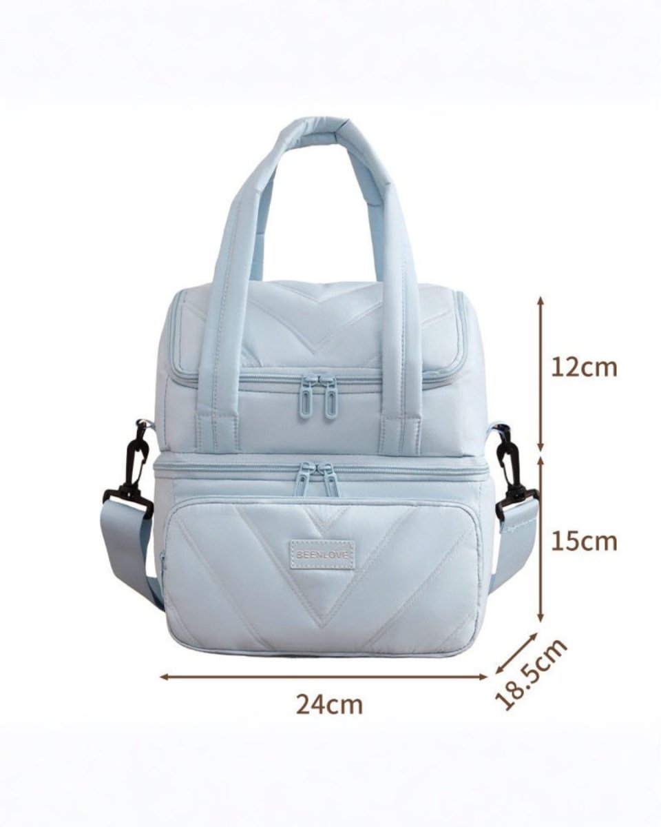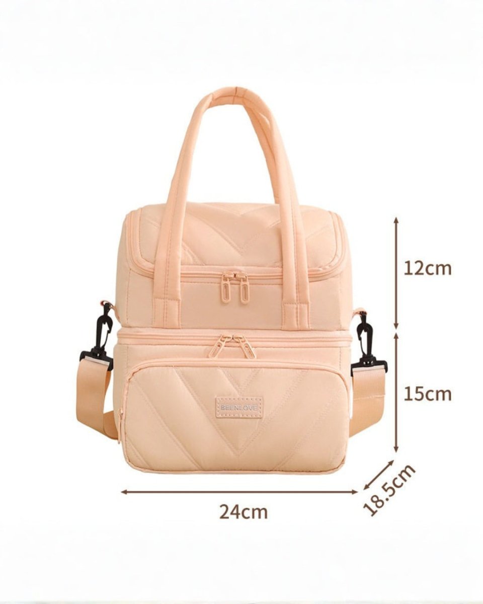 Double-layer lunch bag, large-capacity lunch box for cross-border use, insulated hand and shoulder bag for camping