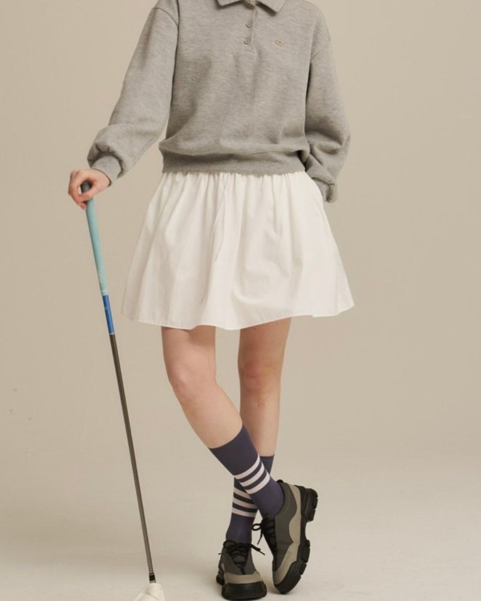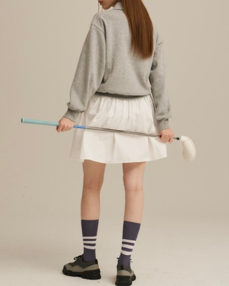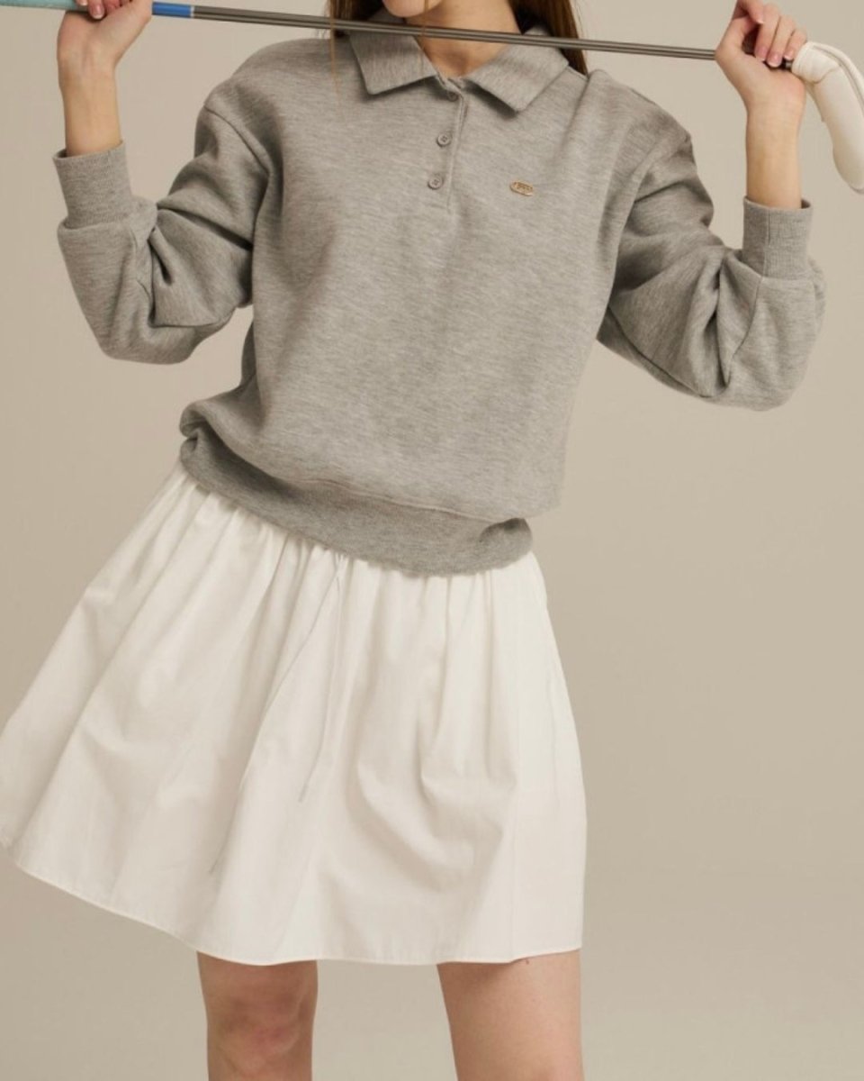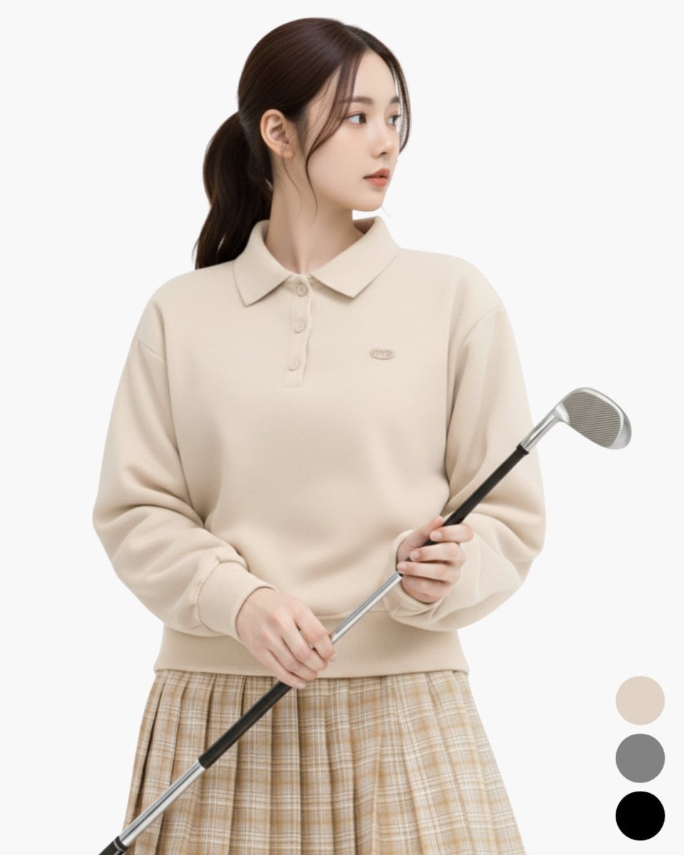 This sweatshirt features a polo collar for a sophisticated look. Its soft feel and easy-to-move silhouette make it perfect for golf and everyday wear. It pairs easily with pants or skirts, making it a piece you'll want to get in different colors.