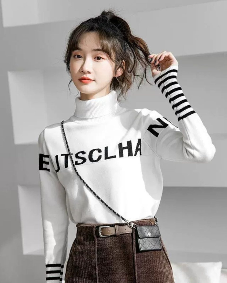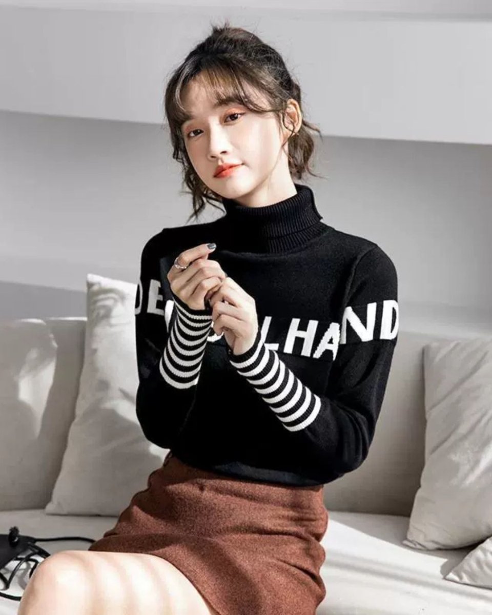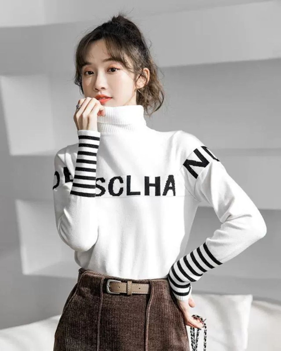 Pull col roulé slim pour femme, nouveauté pour l'hiver 2024. Cette couche de base en tricot épais de style coréen est polyvalente et a un style étranger.