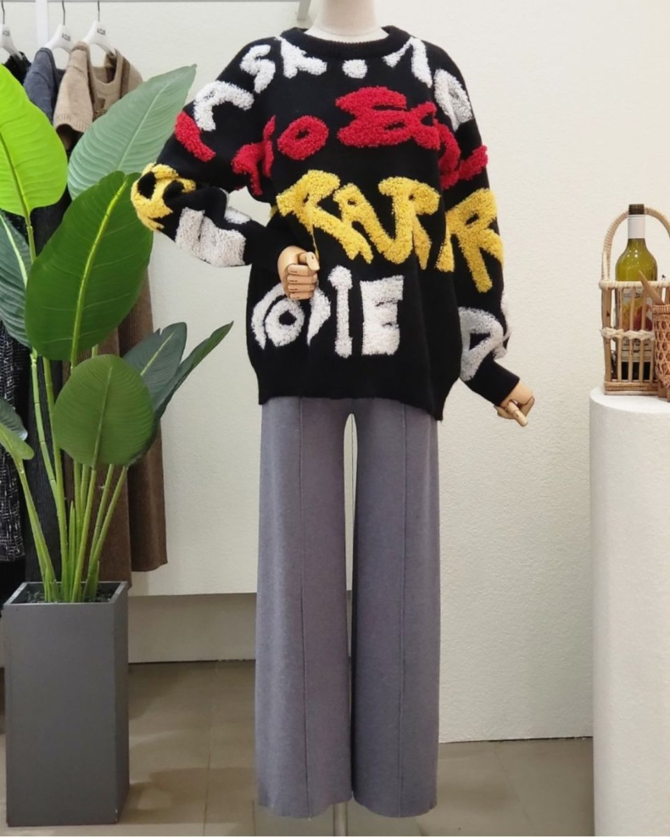 グラフィックシャギーロゴ ニットトップス CH968 - Chamule