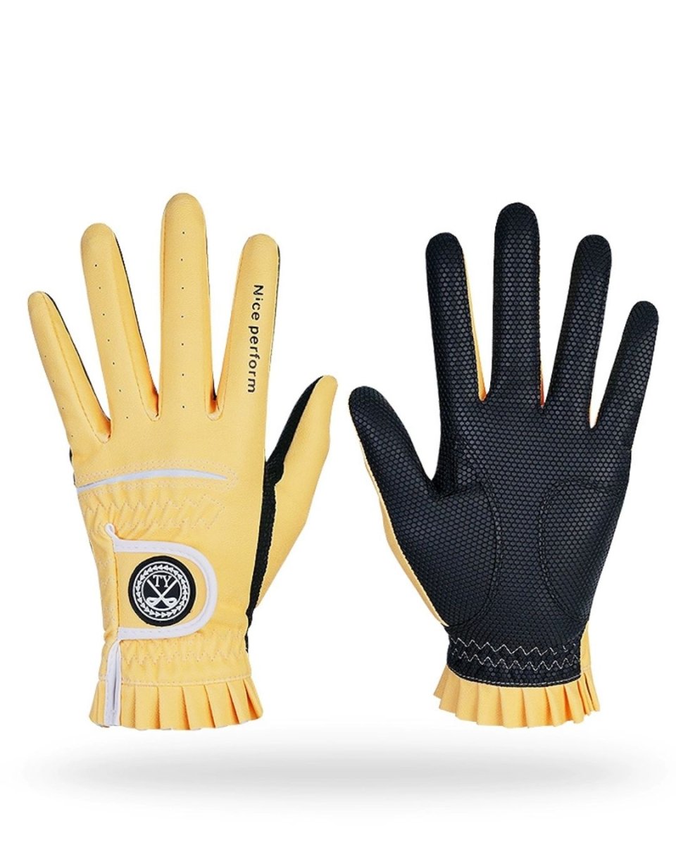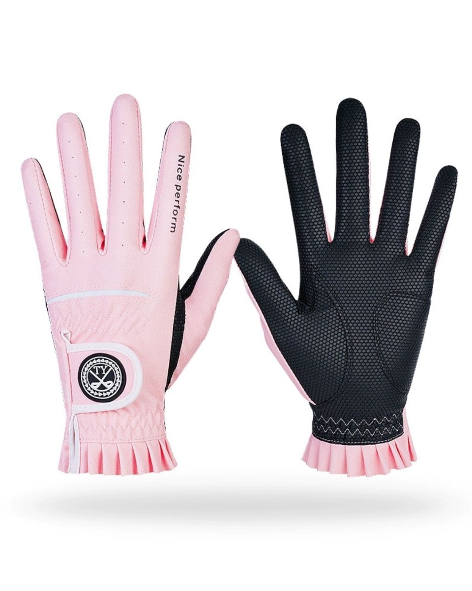 Sarung Tangan Golf Wanita, PU Anti Selip, Modis, Tahan Abrasi, Bernapas, Hitam, Tahan Abrasi, Tahan Noda, 1 Pasang (Kiri dan Kanan)