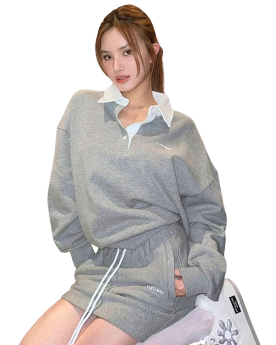 Setelan olahraga kasual wanita, Musim Gugur 2024, gadis seksi Amerika retro, merek modis dan trendi, set kaus dan rok abu-abu.