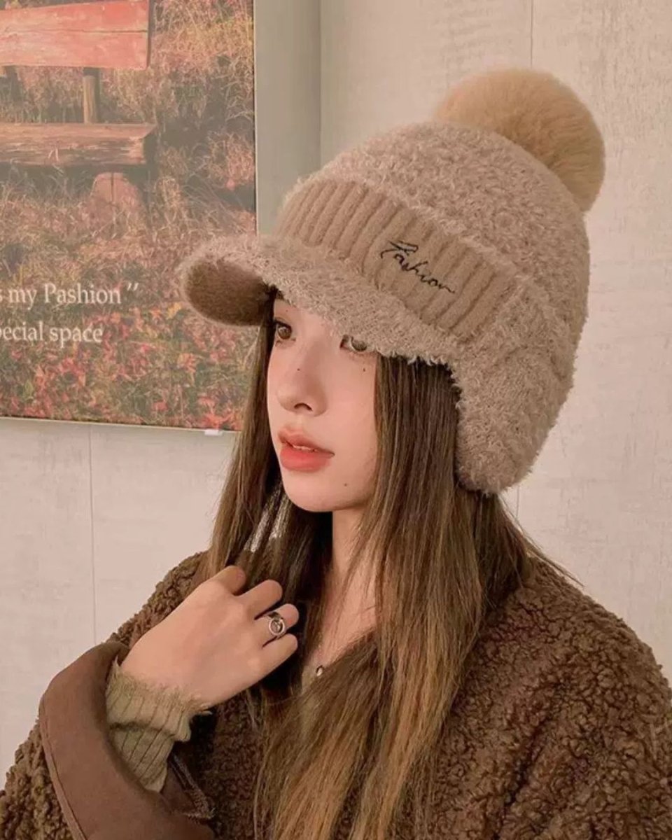Topi Musim Dingin Luar Ruangan Baru 2025, Penutup Telinga Wanita, Beanie Tahan Angin dan Dingin, Topi Hangat Rajut Bulu Domba, Berkendara
