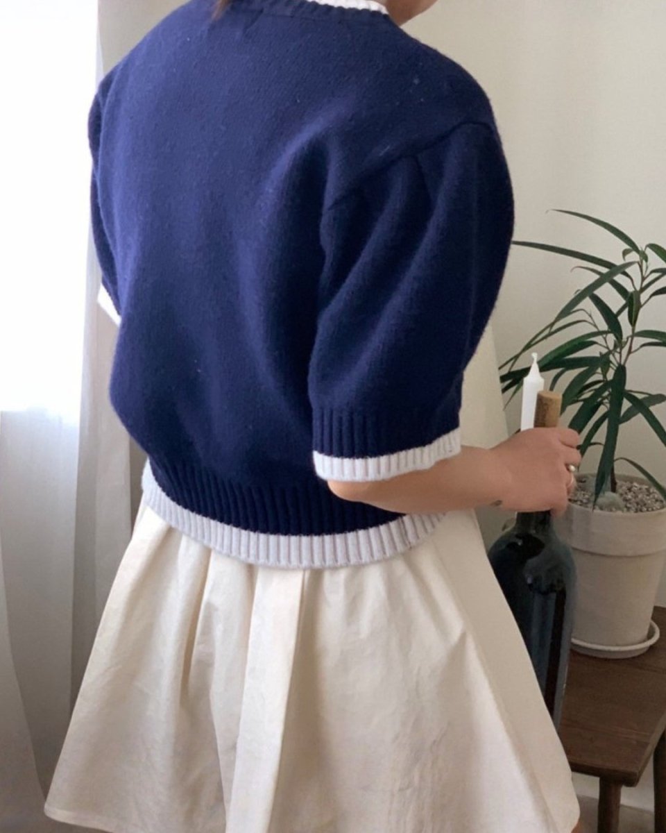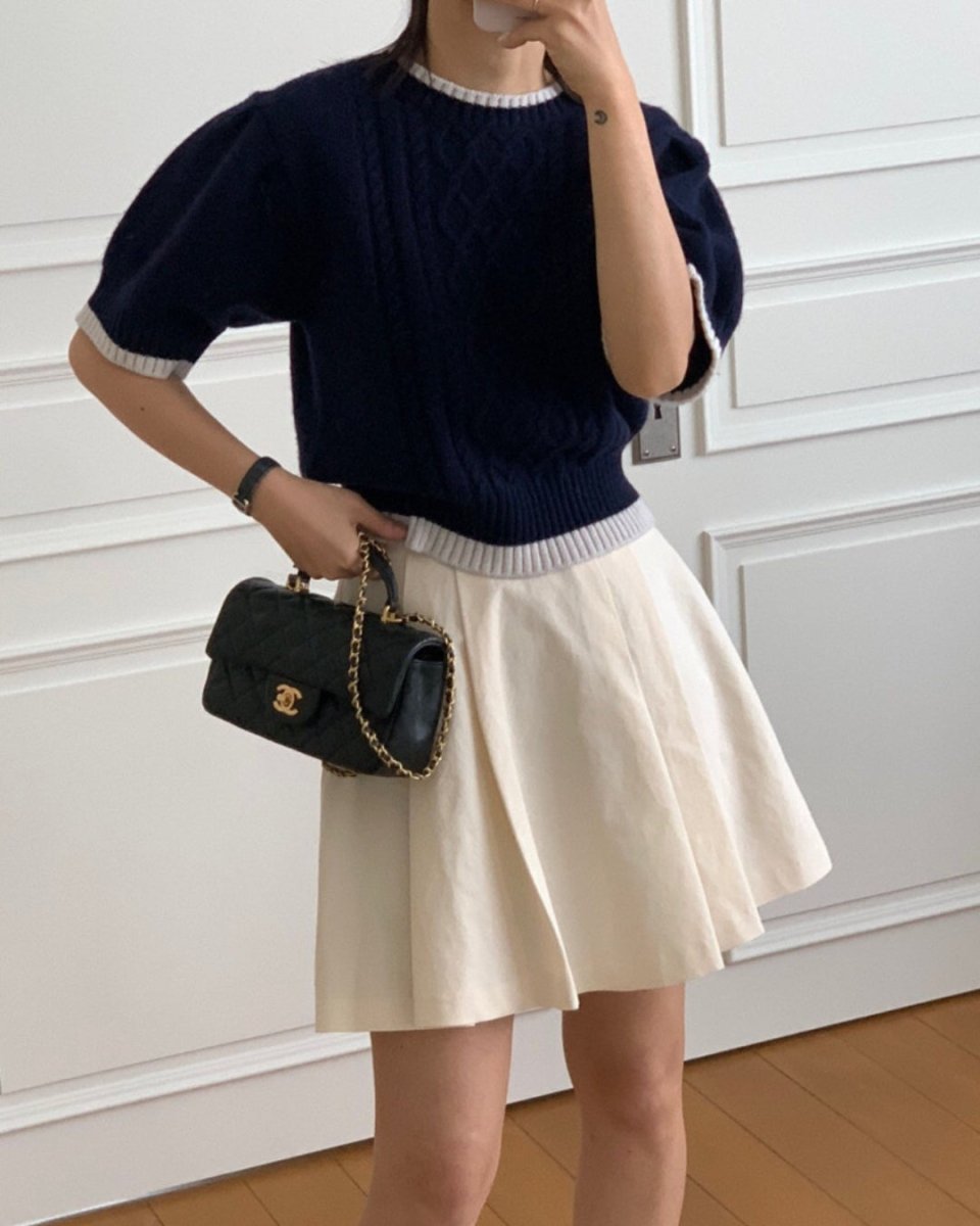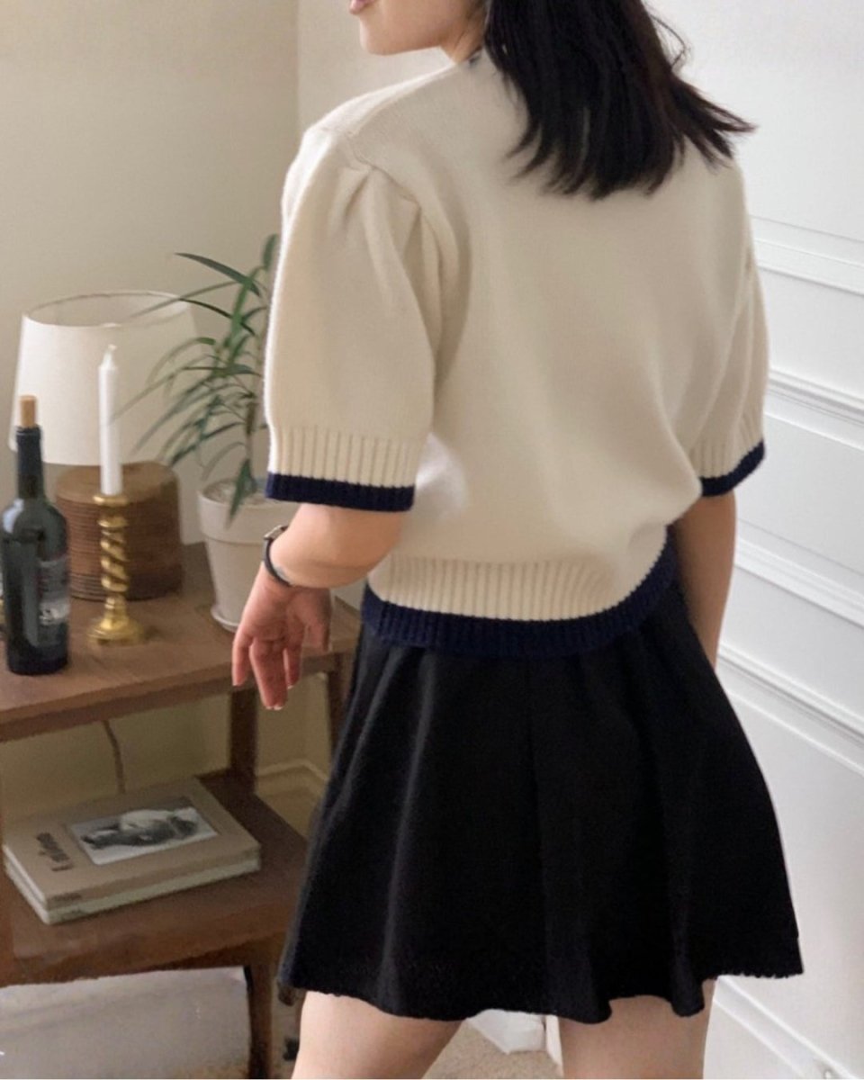 Atasan rajut lengan pendek ini menampilkan rajutan kabel tiga dimensi untuk tampilan yang elegan. Garis warna kontras di bagian leher dan manset menambahkan aksen halus, menciptakan desain yang sederhana namun canggih. Siluet yang pas juga memperindah bentuk tubuh Anda. Atasan ini mudah dipadukan dengan rok maupun celana, menjadikannya serbaguna untuk berbagai macam tampilan, dari kasual rapi hingga pakaian golf.