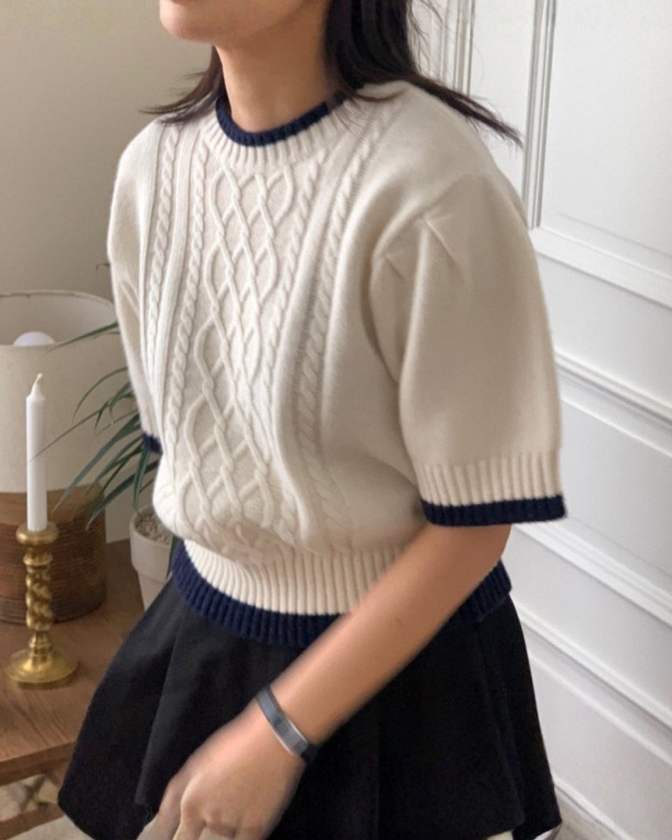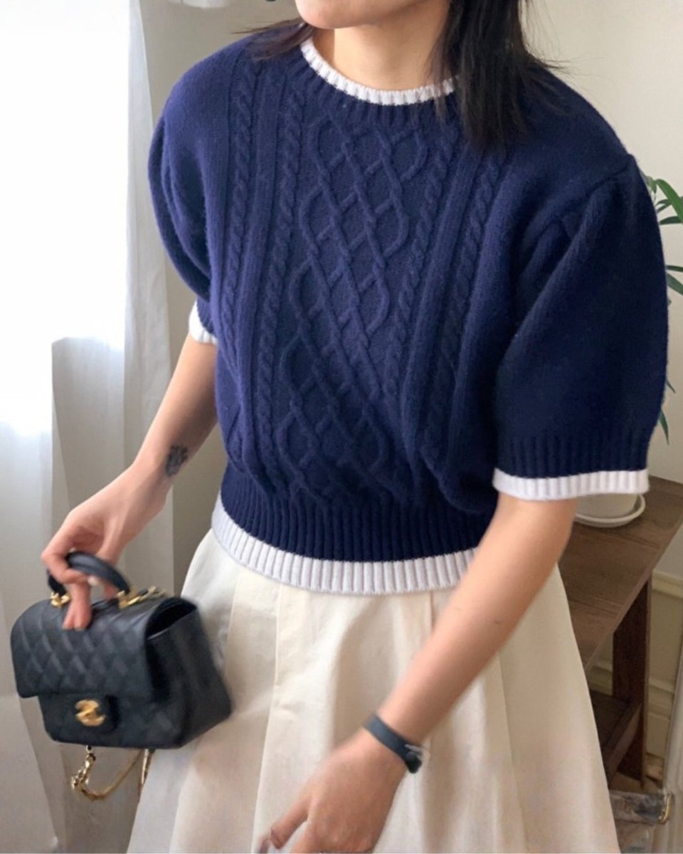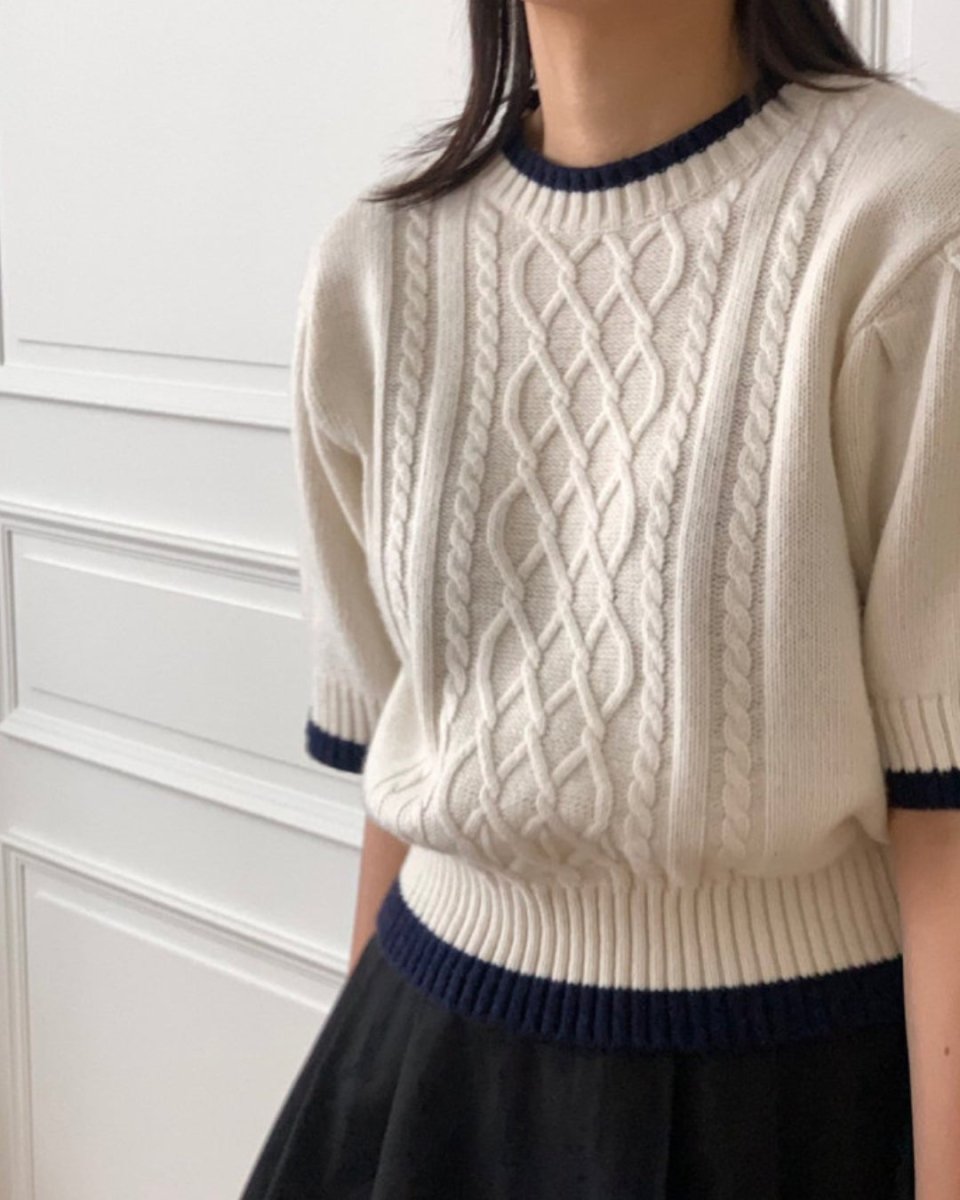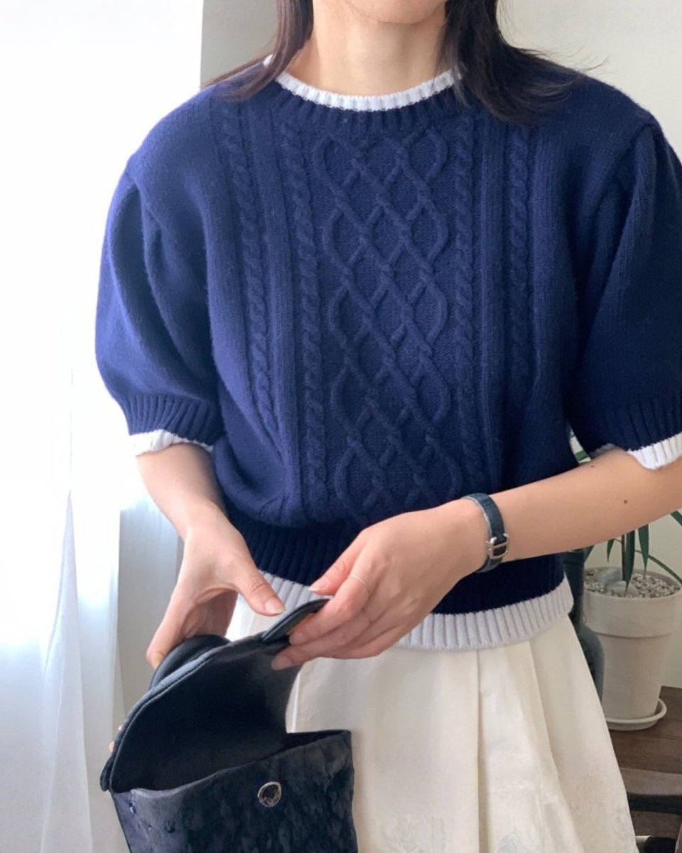 クラシックケーブル 半袖ニットトップス CH1005 - Chamule