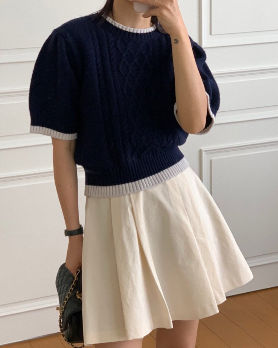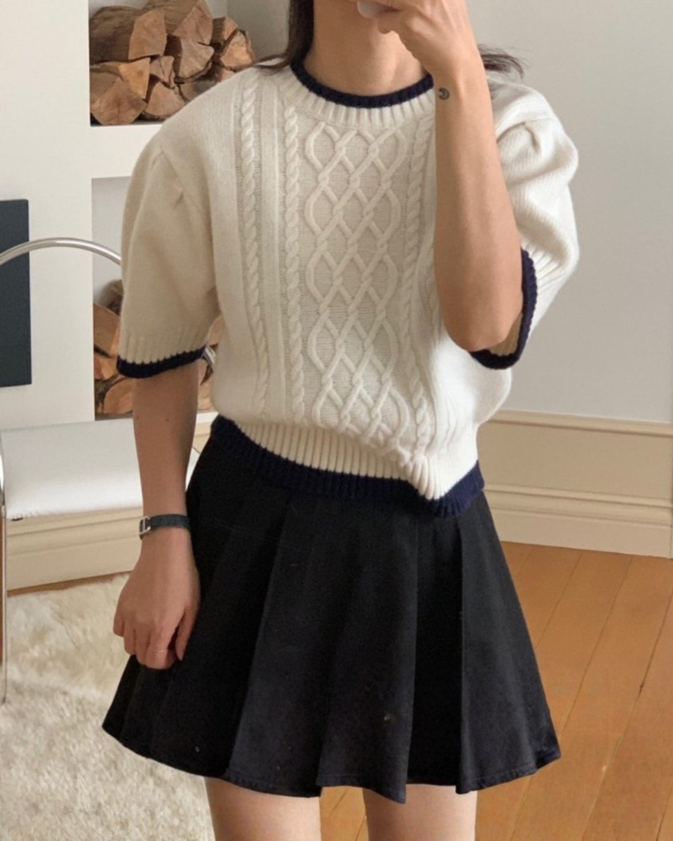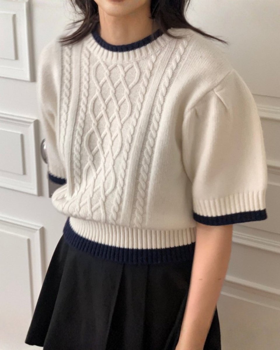 クラシックケーブル 半袖ニットトップス CH1005 - Chamule