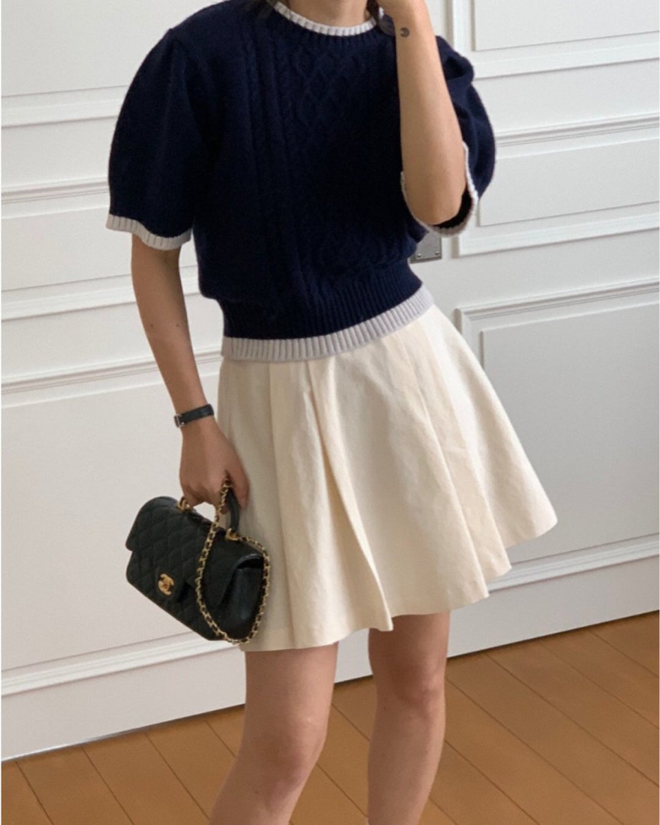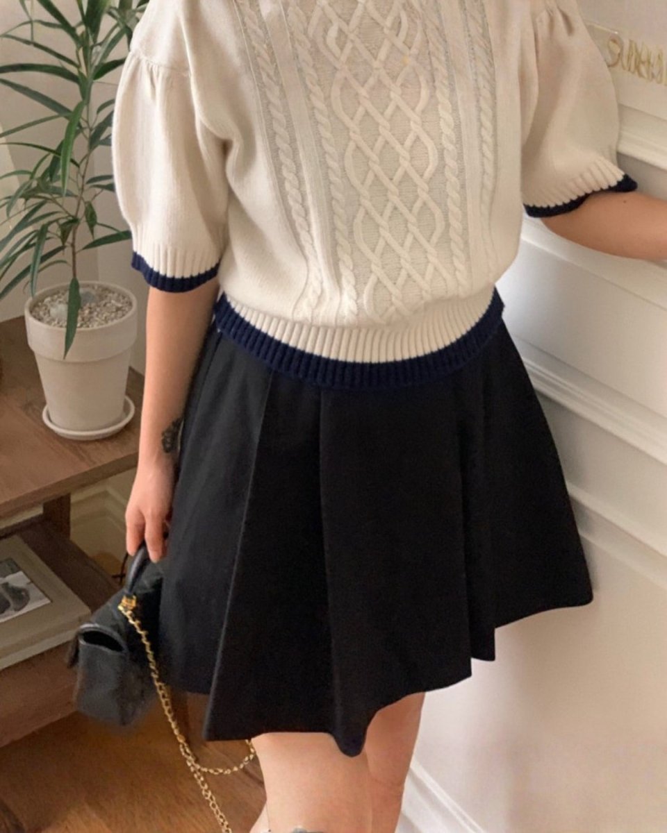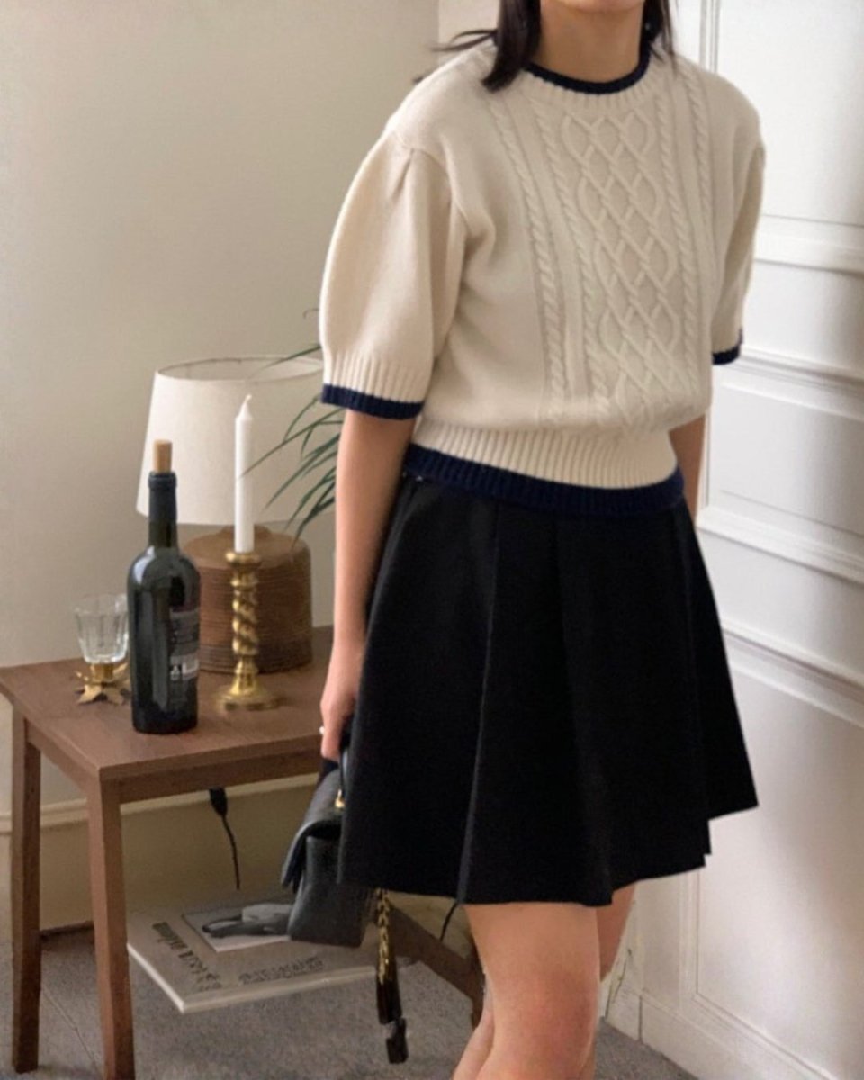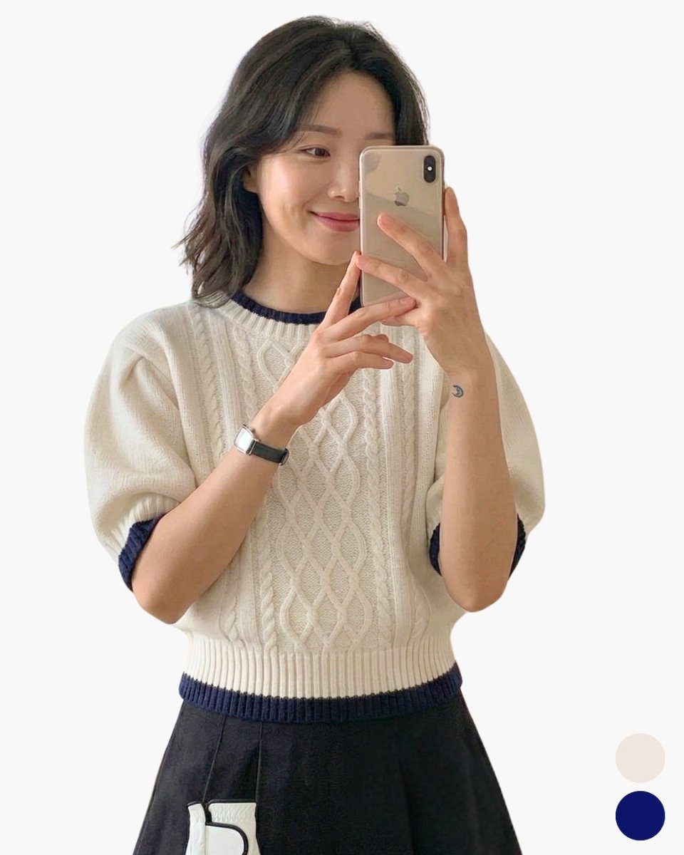 クラシックケーブル 半袖ニットトップス CH1005 - Chamule