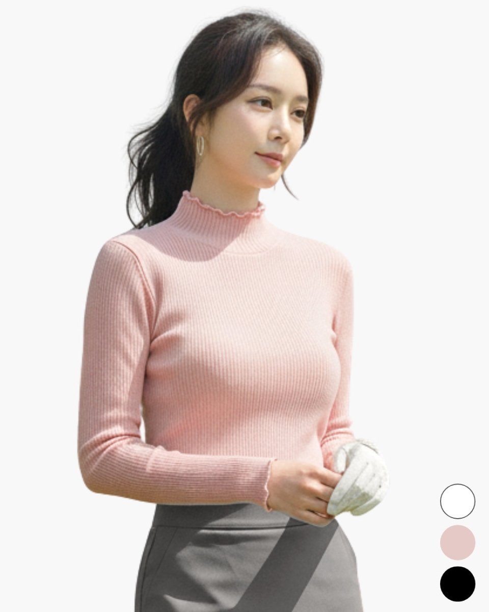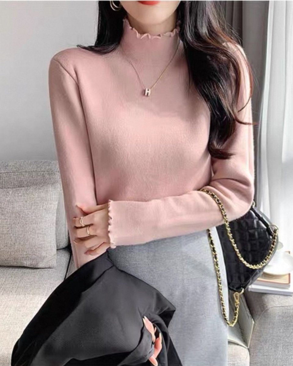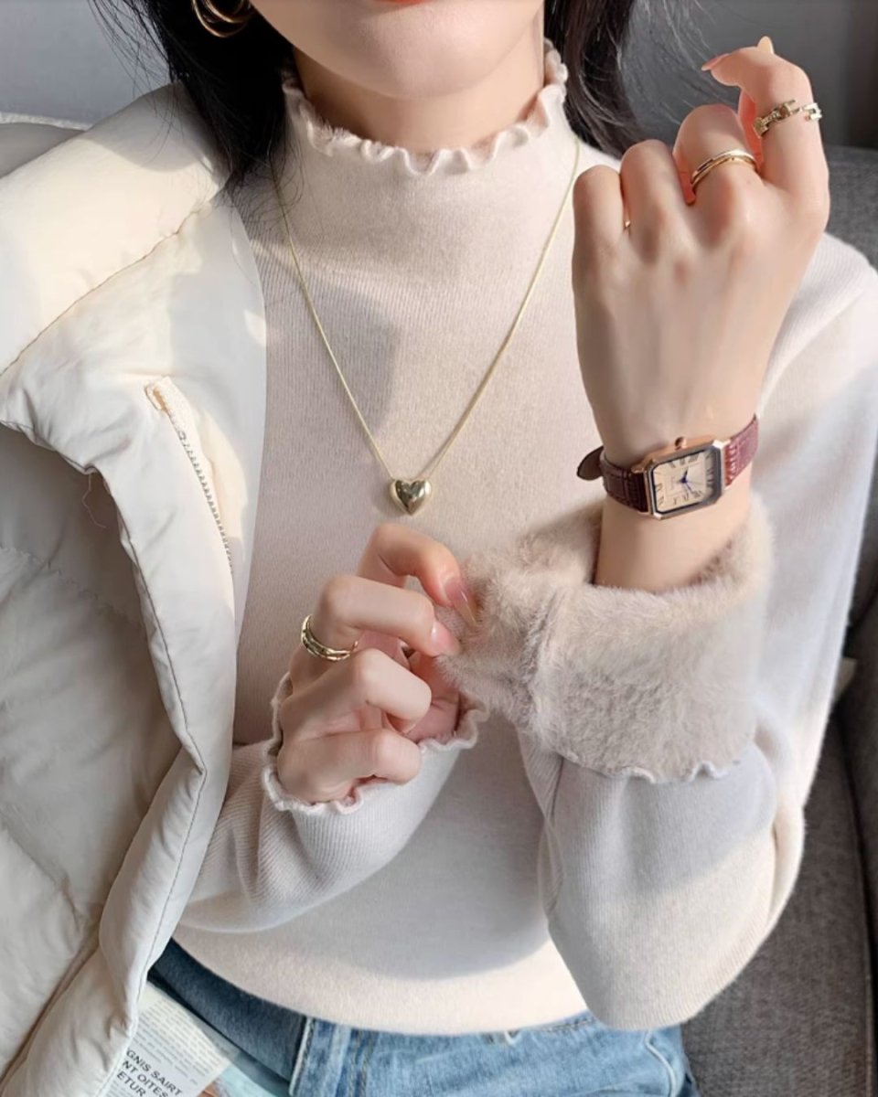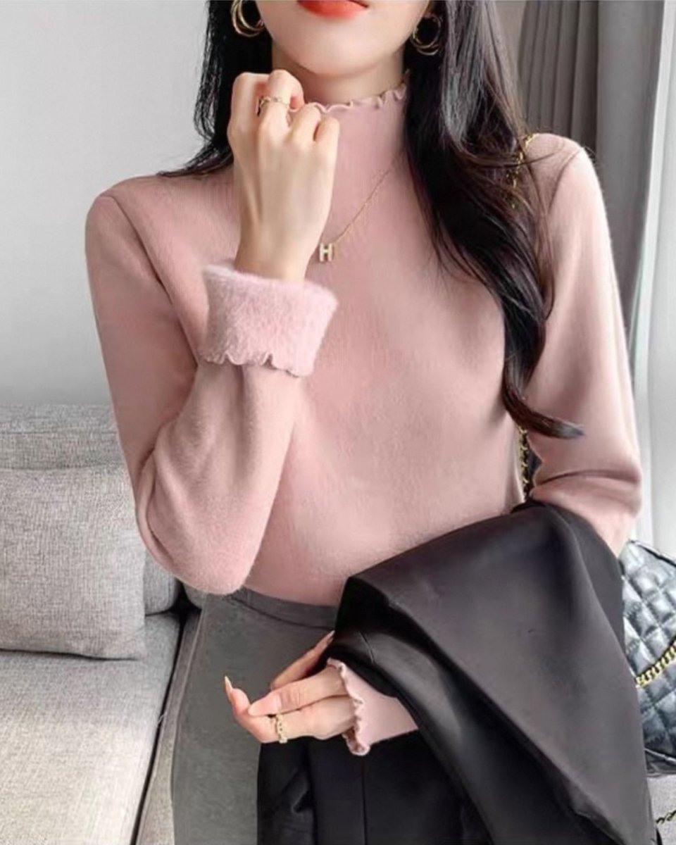 Atasan Korea tebal, atasan hitam mewah model semi-turtleneck, pakaian dalam fleece one-piece, sweater, lapisan dasar rajutan hangat untuk wanita di musim gugur dan musim dingin.