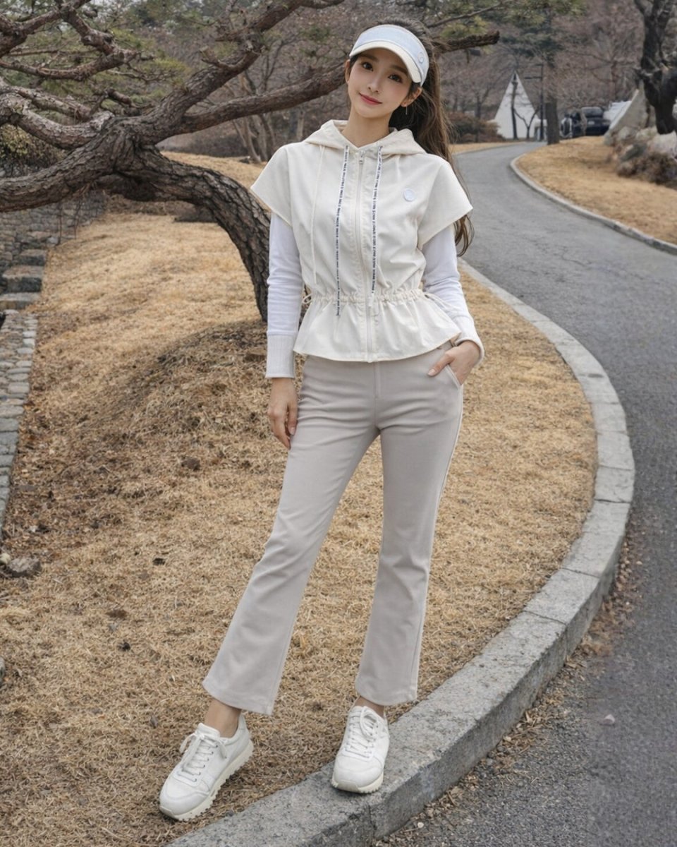 軽やかな素材感で動きやすく、スイング時もストレスフリー。ウエストギャザーとペプラムデザインがスタイルアップを叶え、ゴルフ場でも洗練された印象に仕上げます。