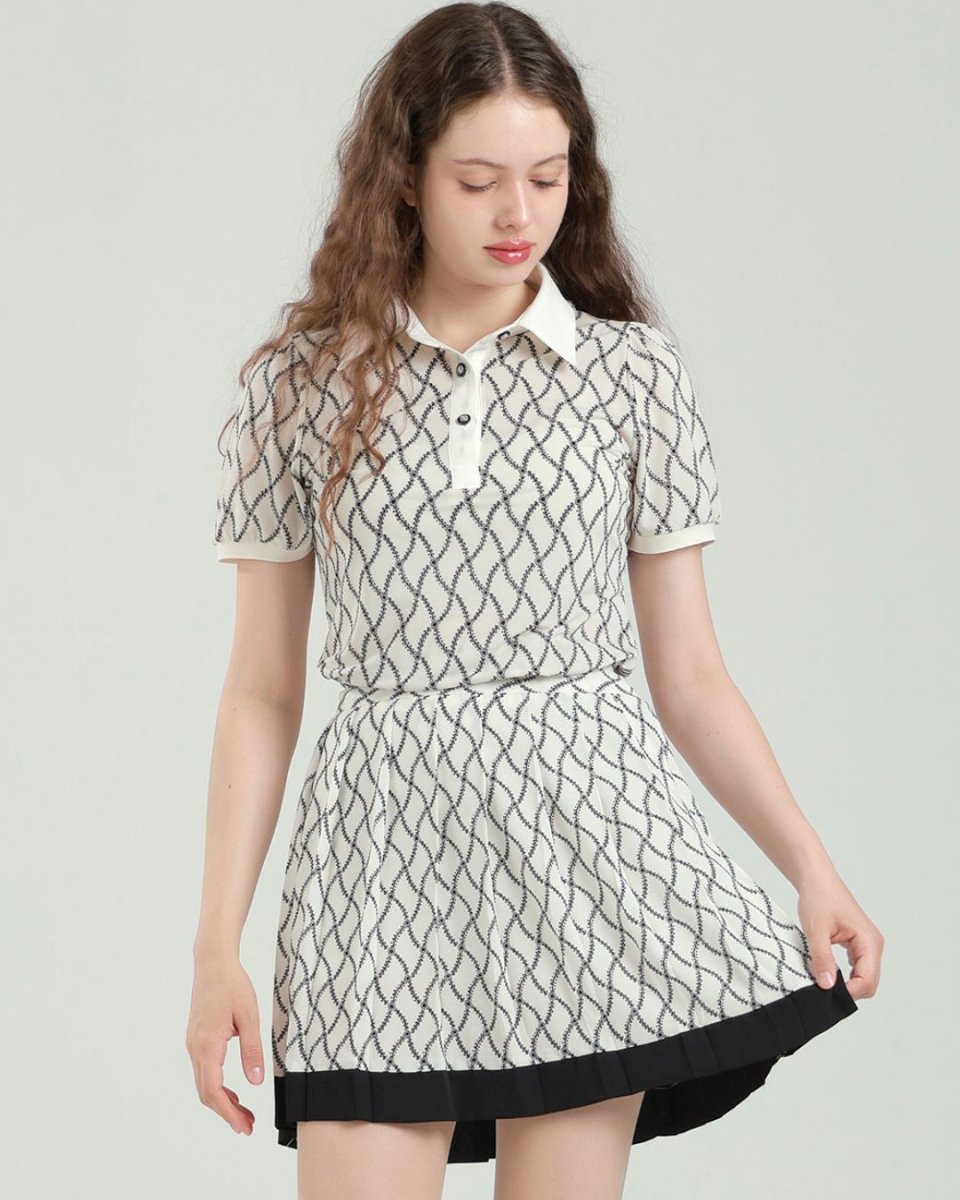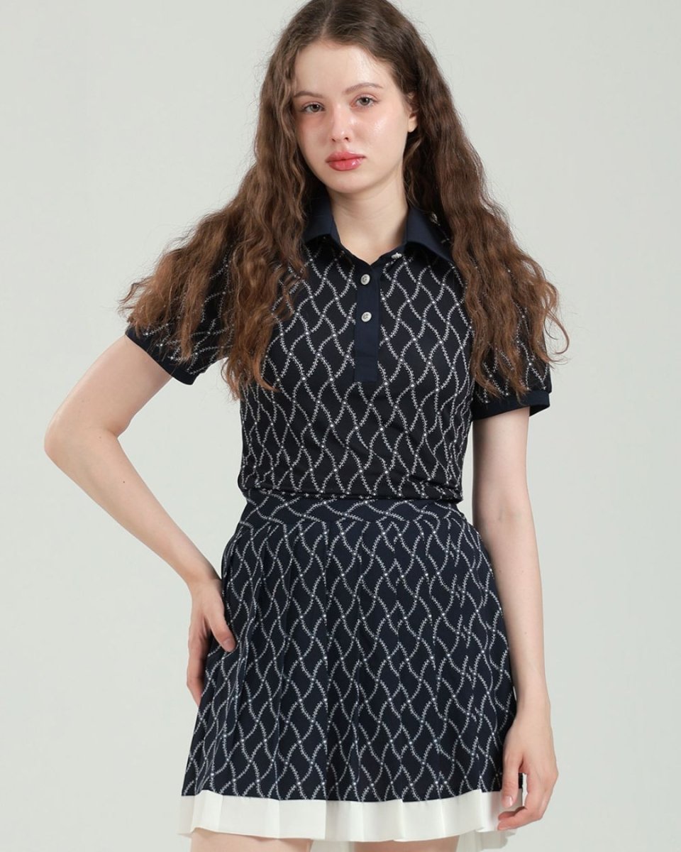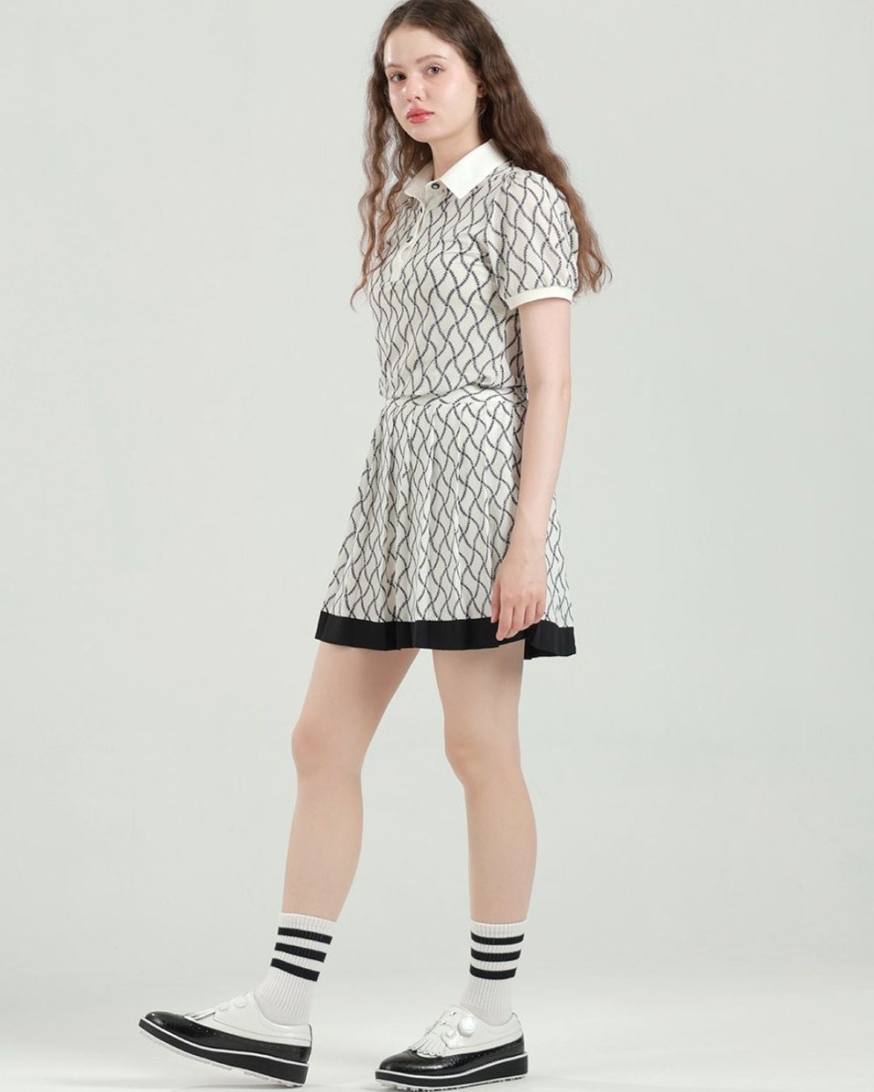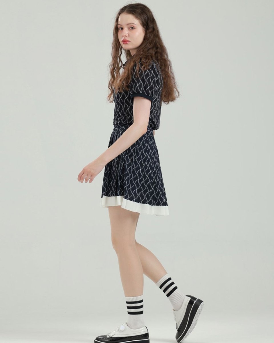 Atasan ini memiliki potongan yang nyaman, memungkinkan gerakan yang mudah dan siluet yang rapi. Roknya ringan dan nyaman dipakai, memastikan kenyamanan saat bermain. Motifnya menarik perhatian, namun tetap elegan.