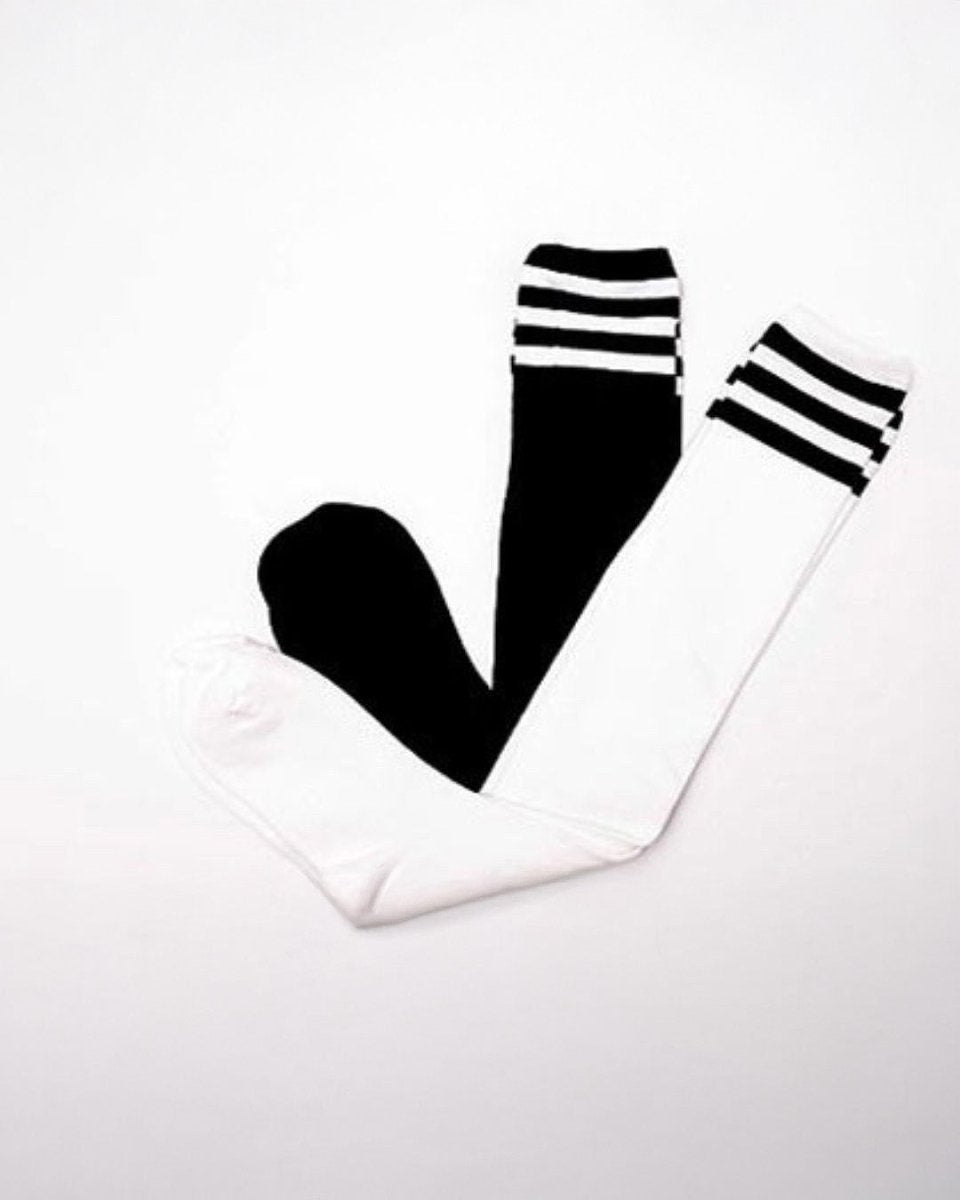 Questi calzini al ginocchio sono realizzati in materiale elasticizzato per una vestibilità comoda e rimangono al loro posto anche durante la partita. Sono facili da abbinare a gonne o pantaloncini per un look sportivo. Sono anche un capo versatile per l'uso quotidiano. Le tre strisce creano un look pulito per i tuoi piedi e il design semplice li rende un capo classico e pratico.