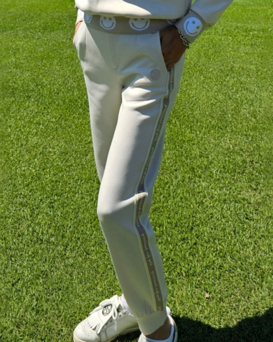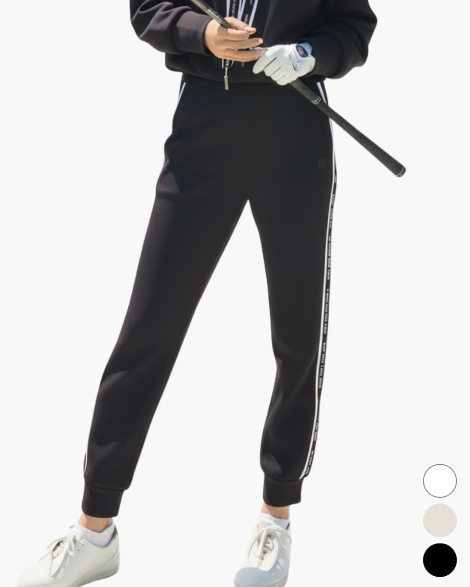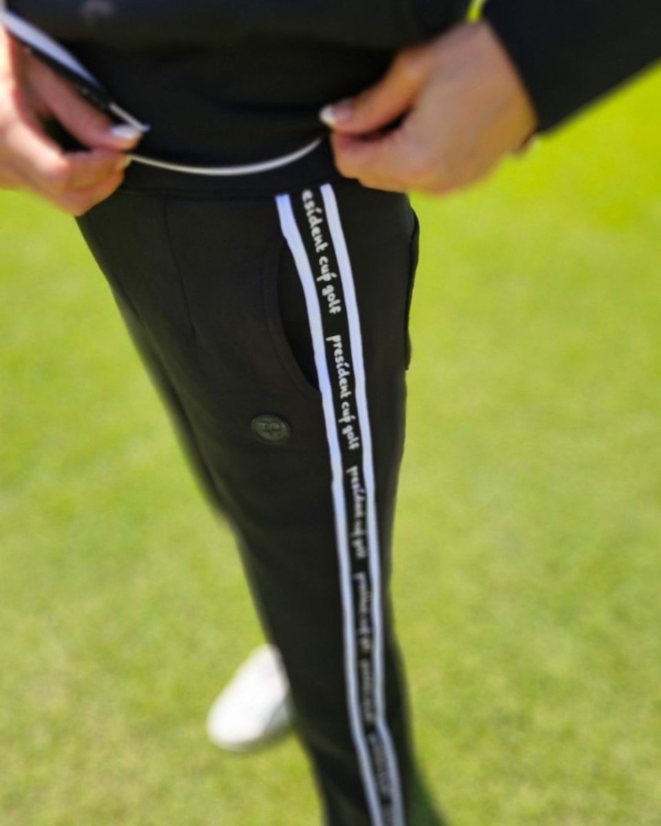 脚をまっすぐ見せてくれるサイドライン入りジョガー。伸縮性が高く、ラウンド中の歩行もスムーズ。リラックス感がありつつ美脚シルエットが叶う1枚です。単品使いはもちろん、同素材フーディと合わせれば上品なセットアップコーデが完成します。