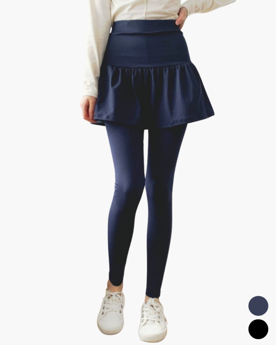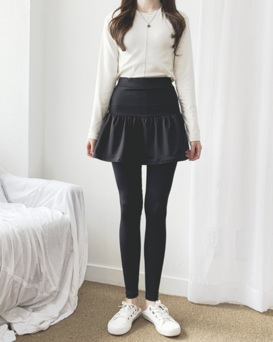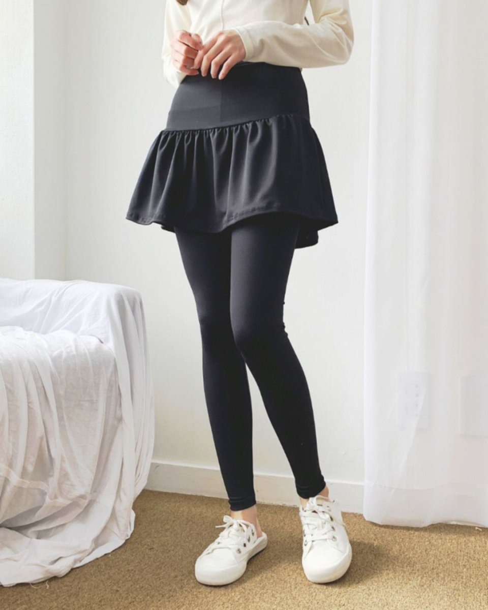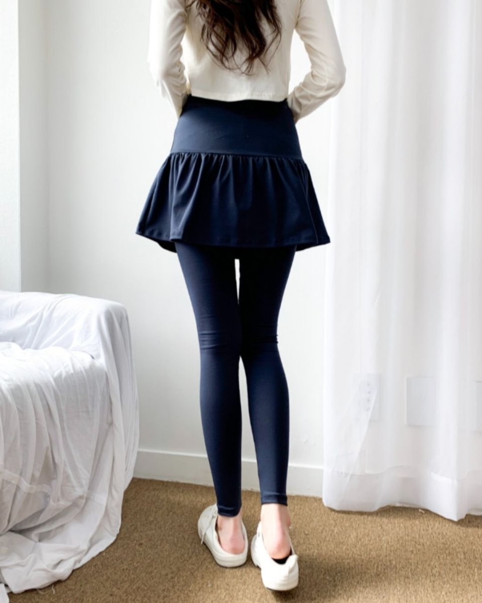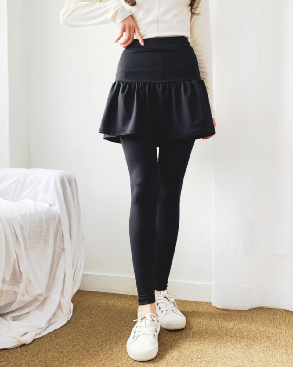 フリルスカート付きで体型カバーしながら動きやすいゴルフレギンス。伸縮性のある素材でスイングや歩行も快適。軽量でロングシーズン活躍し、練習場やラウンドの防寒にも最適。美シルエットと機能性を両立した人気のスカートレギンスです。
