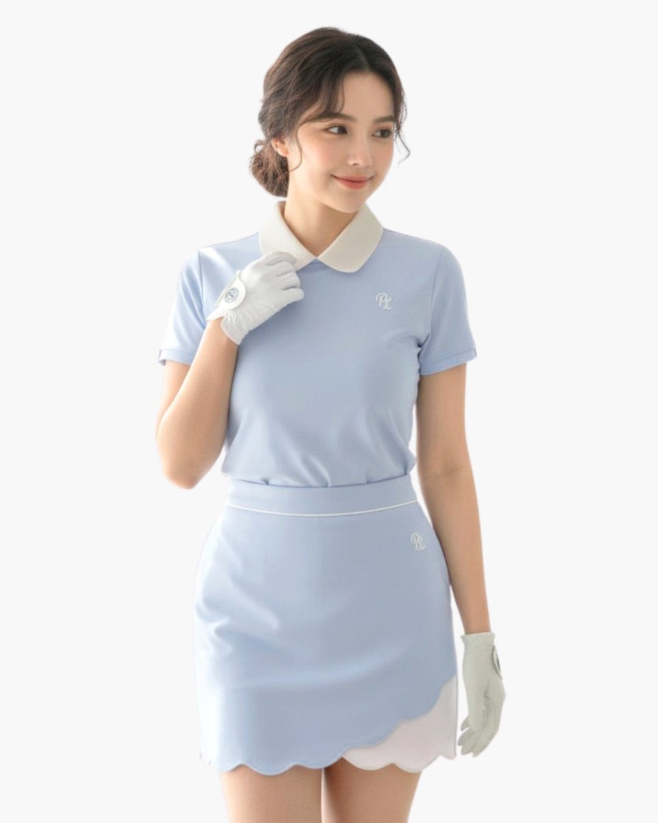 配色デザインとスカラップラインが印象的なゴルフポロセットアップ。すっきりとしたシルエットに程よい可愛さをプラスし、ラウンドでもスタイルよく見せてくれます。ストレッチ性のある素材で動きやすく、快適な着心地。上品さとトレンド感を兼ね備えた一着です。