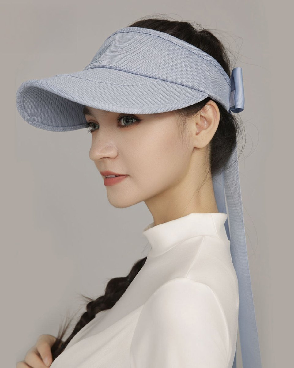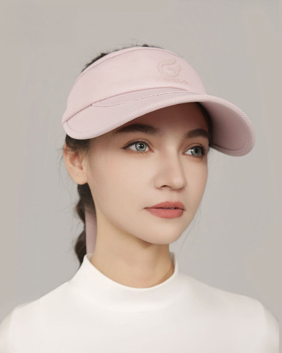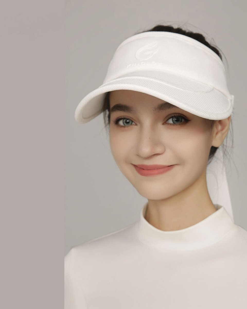 シンプルなロゴデザインが上品な印象を与えるサンバイザー。軽量で通気性のある素材を使用し、長時間のラウンドでも快適な着け心地をキープします。顔まわりをすっきり見せる美しいシルエットで、日差し対策とおしゃれを両立。どんなゴルフコーデにも馴染む万能アイテムです。