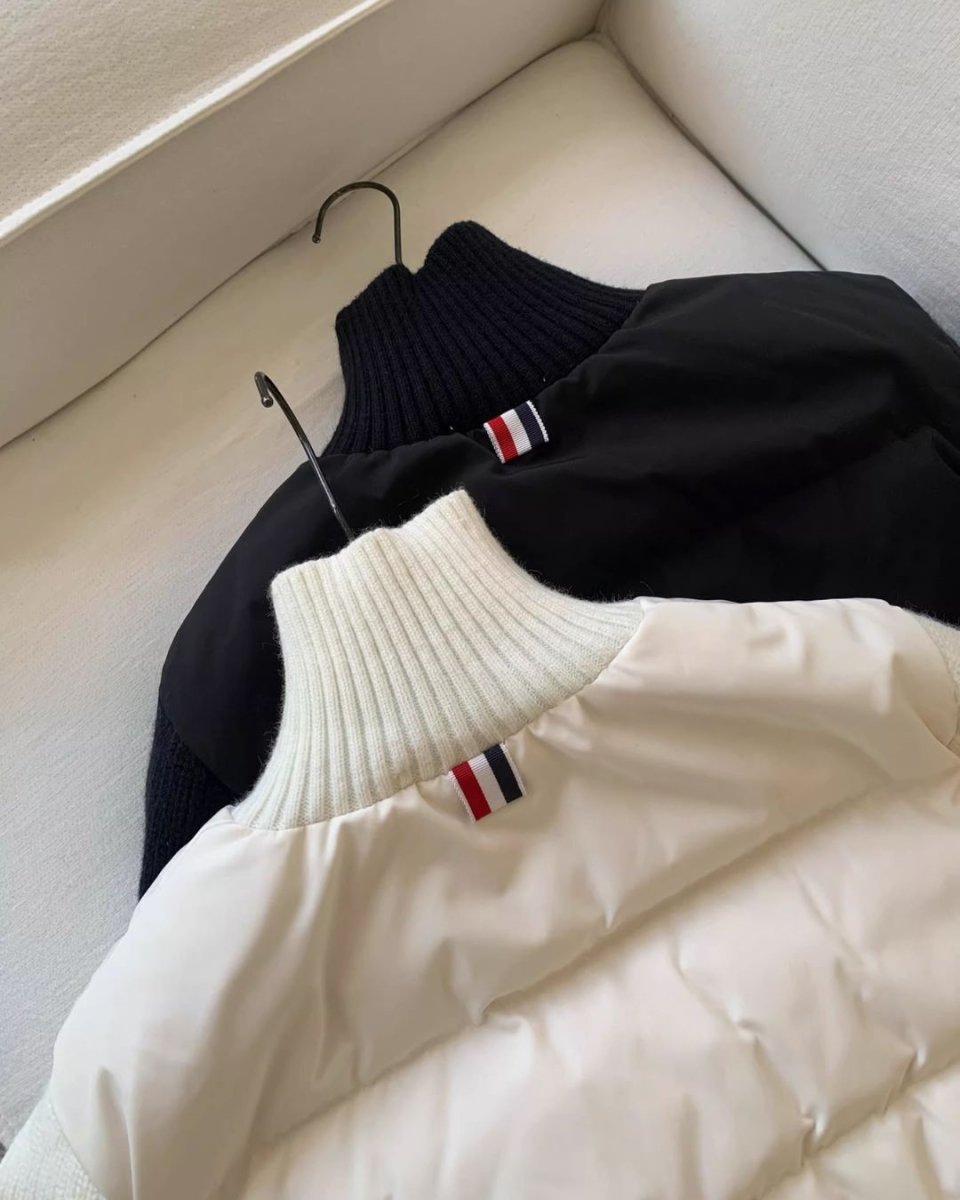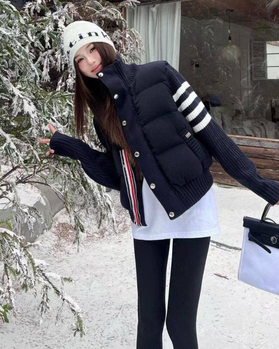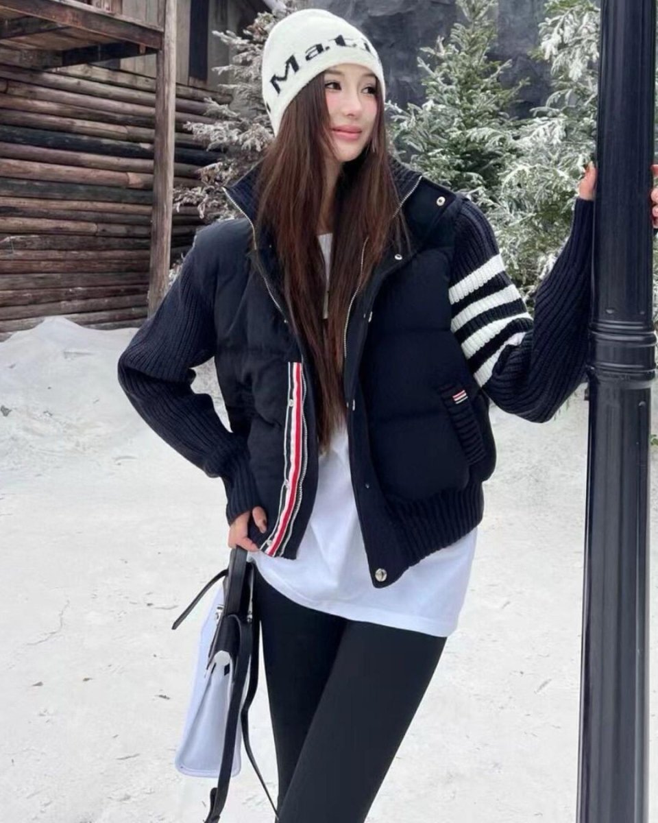 韓國直郵 ~ TB TONNS 針織拼接 90 支白鴨絨外套,女款立領短版保暖外套