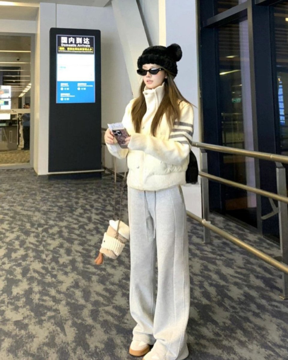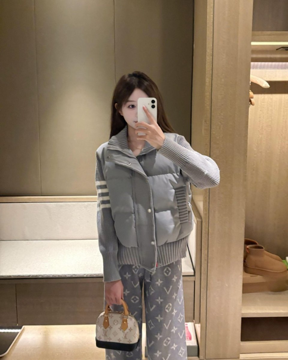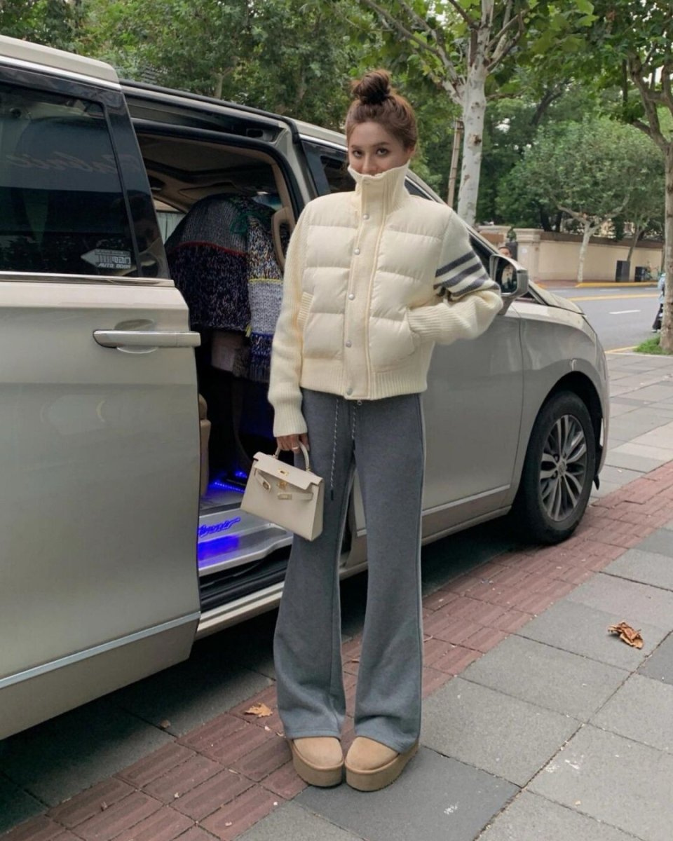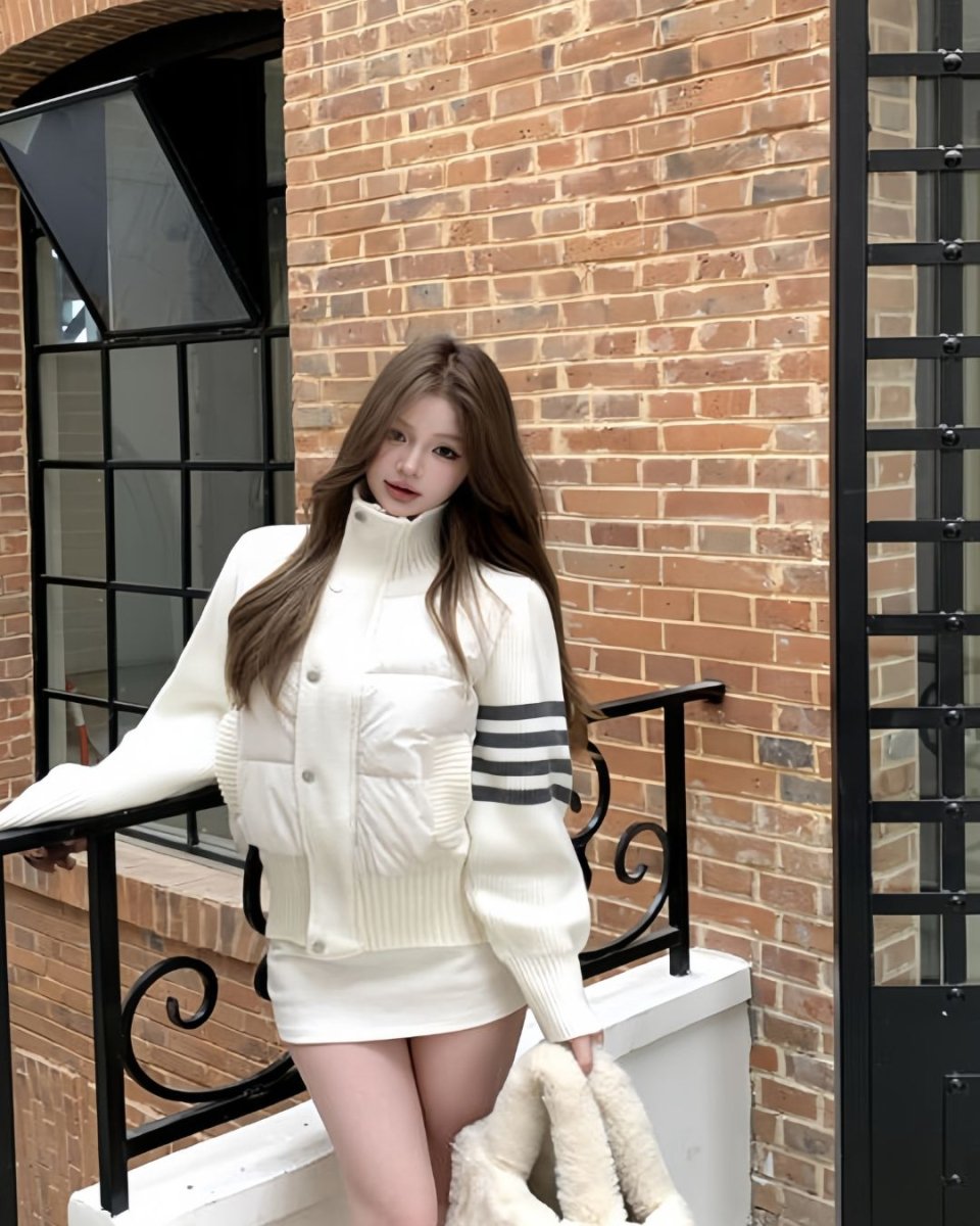 韓國直郵 ~ TB TONNS 針織拼接 90 支白鴨絨外套,女款立領短版保暖外套